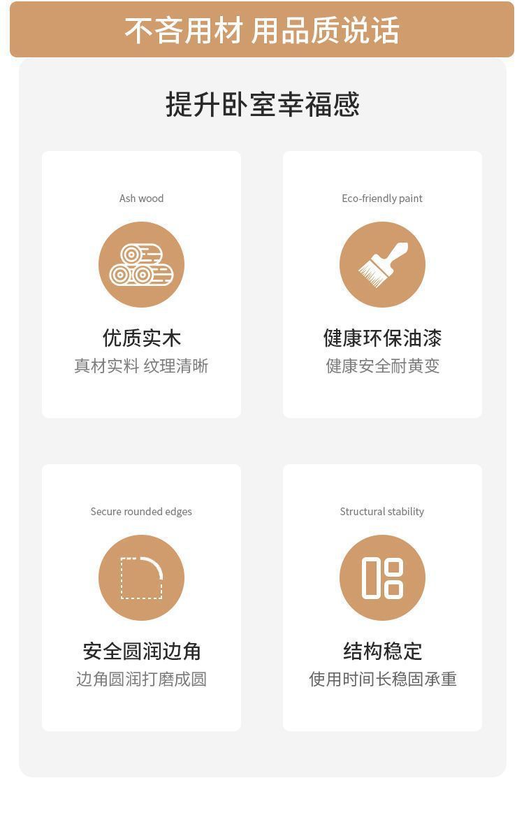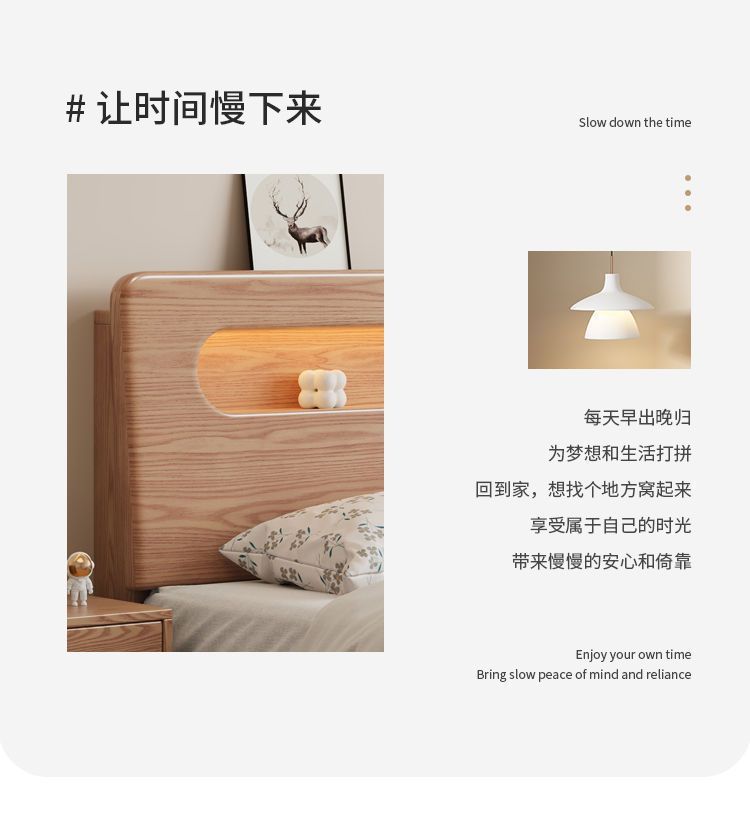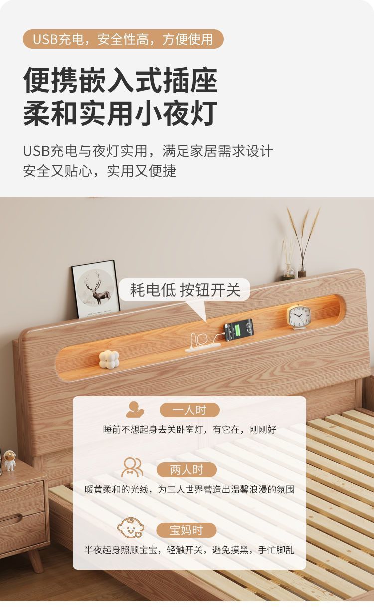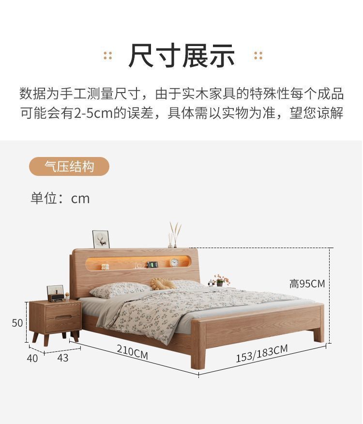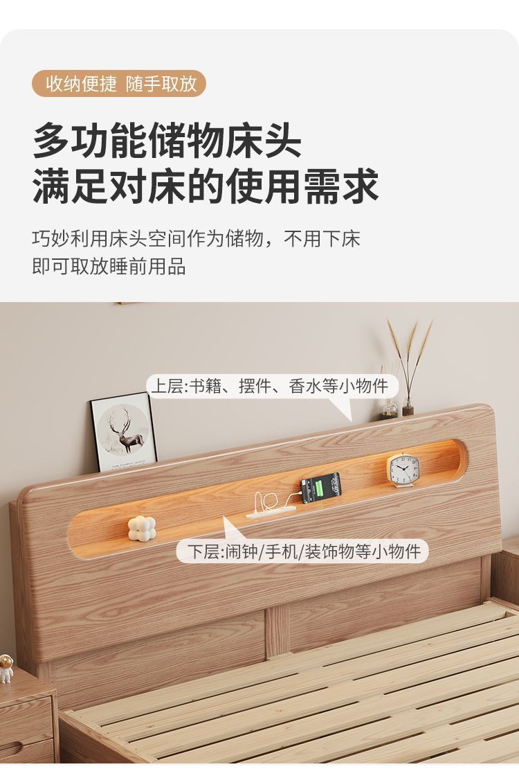 통나무 스타일 애쉬 원목 침대 모따구 구조 1.5m 싱글 침대 1.8m 가정용 더블 침대 무소음 침대스토어 가기