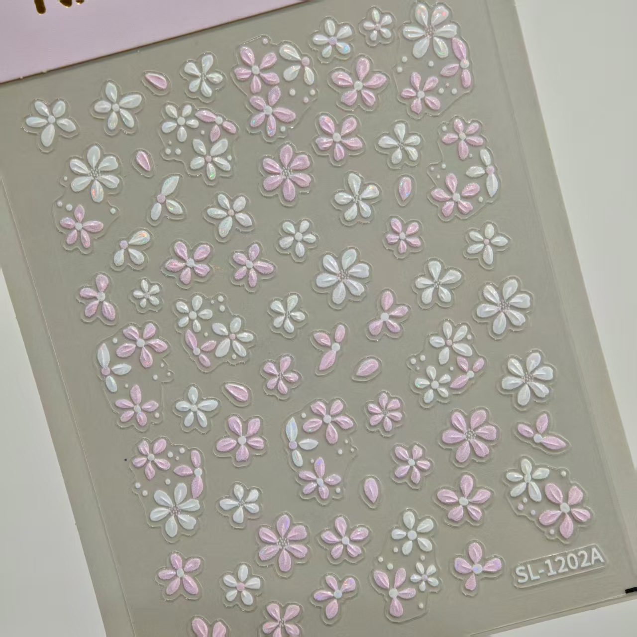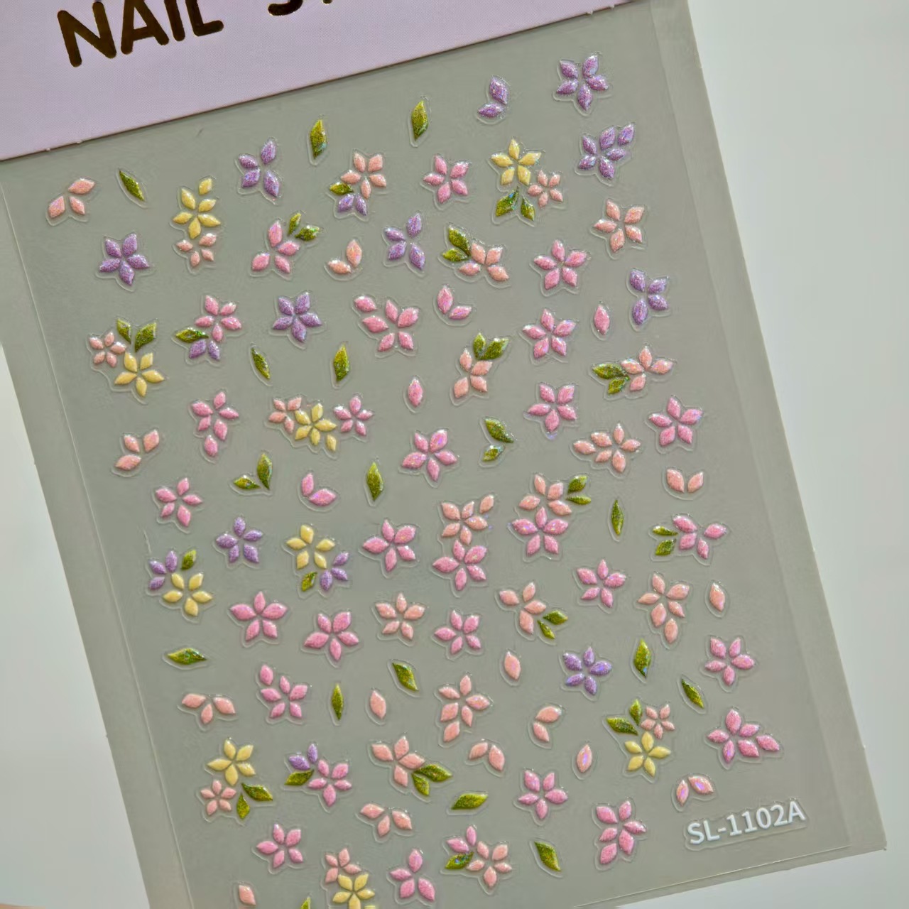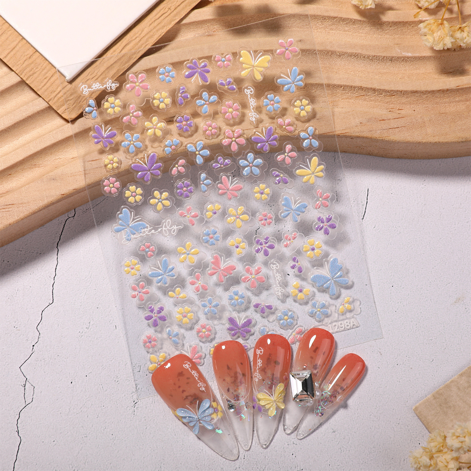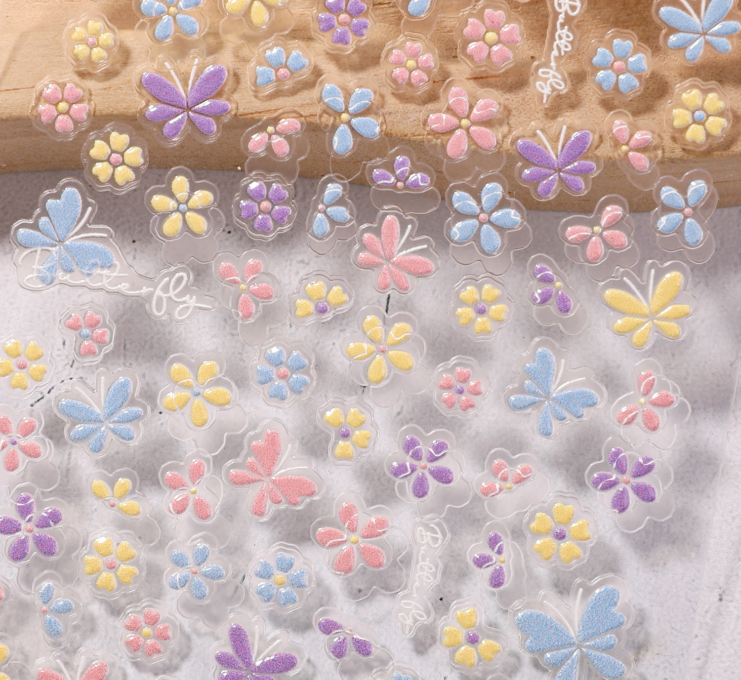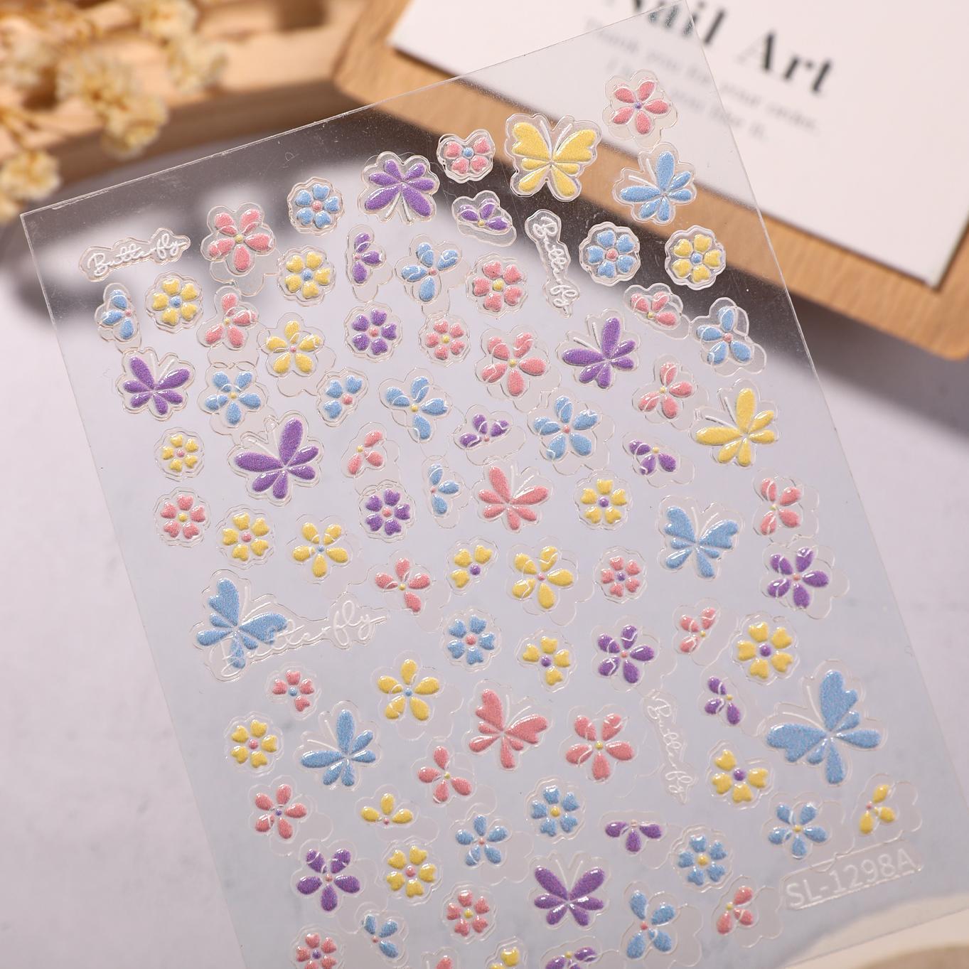 다채로운 젤리 꽃 네일 스티커 5D 양각 여름 작은 신선한 다섯 꽃잎 꽃 네일 아트 스티커 쥬얼리 SL 스타일