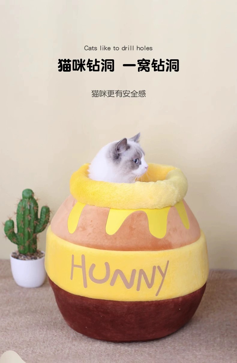 꿀병 고양이 개집, 겨울에는 따뜻하고 사계절 내내 따뜻함, 반밀폐형 귀여운 고양이 개집, 겨울 애완동물 침낭