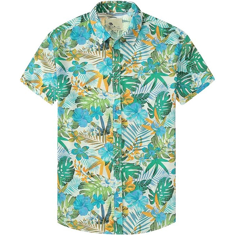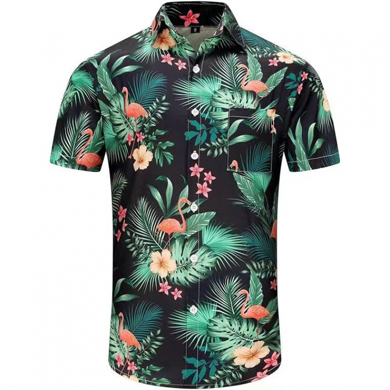 유럽과 미국 코드 대외 무역 새로운 여름 남성 비치 셔츠 유럽 코드 하와이 반팔 꽃 셔츠 남성 플러스 사이즈 의류스토어 가기