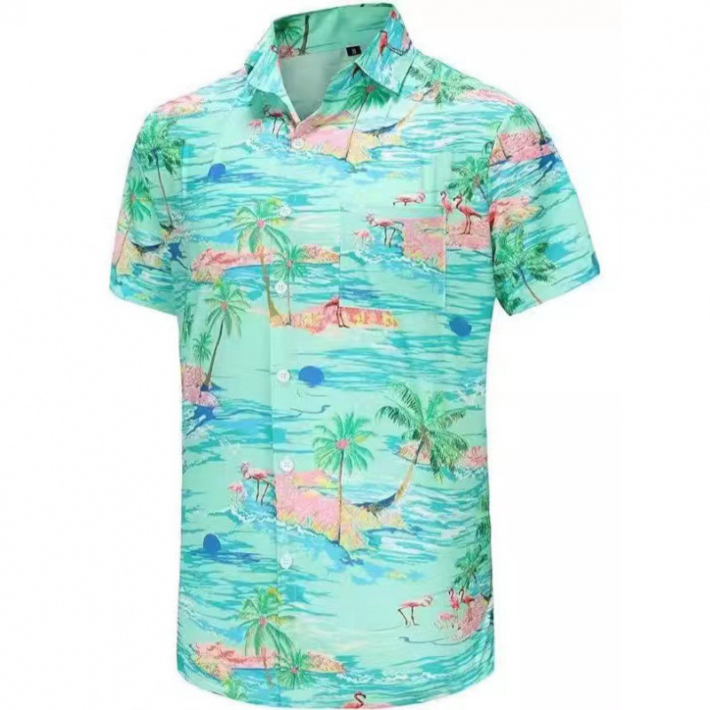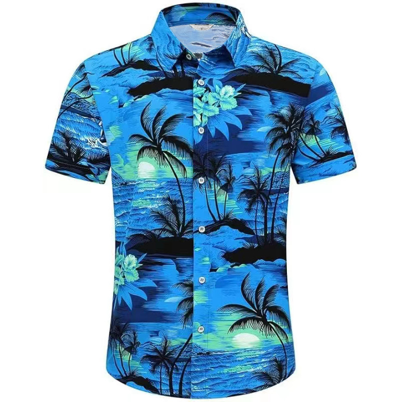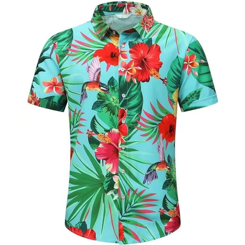유럽과 미국 코드 대외 무역 새로운 여름 남성 비치 셔츠 유럽 코드 하와이 반팔 꽃 셔츠 남성 플러스 사이즈 의류