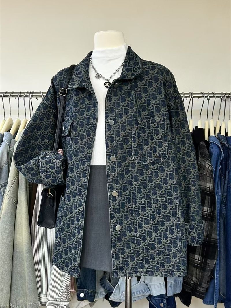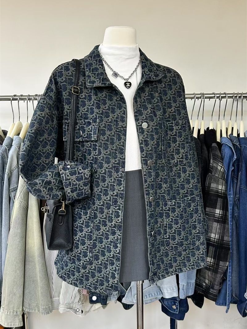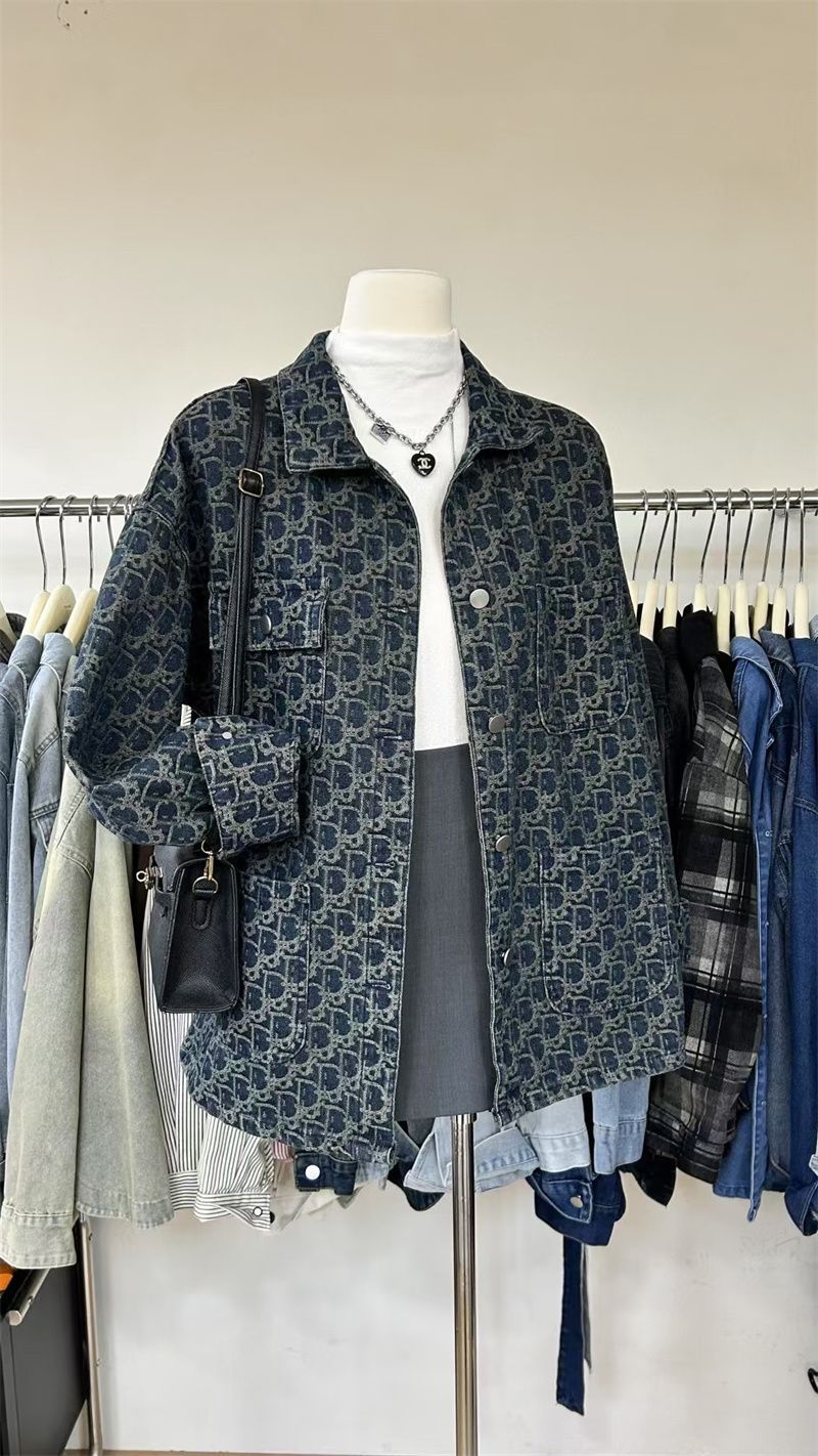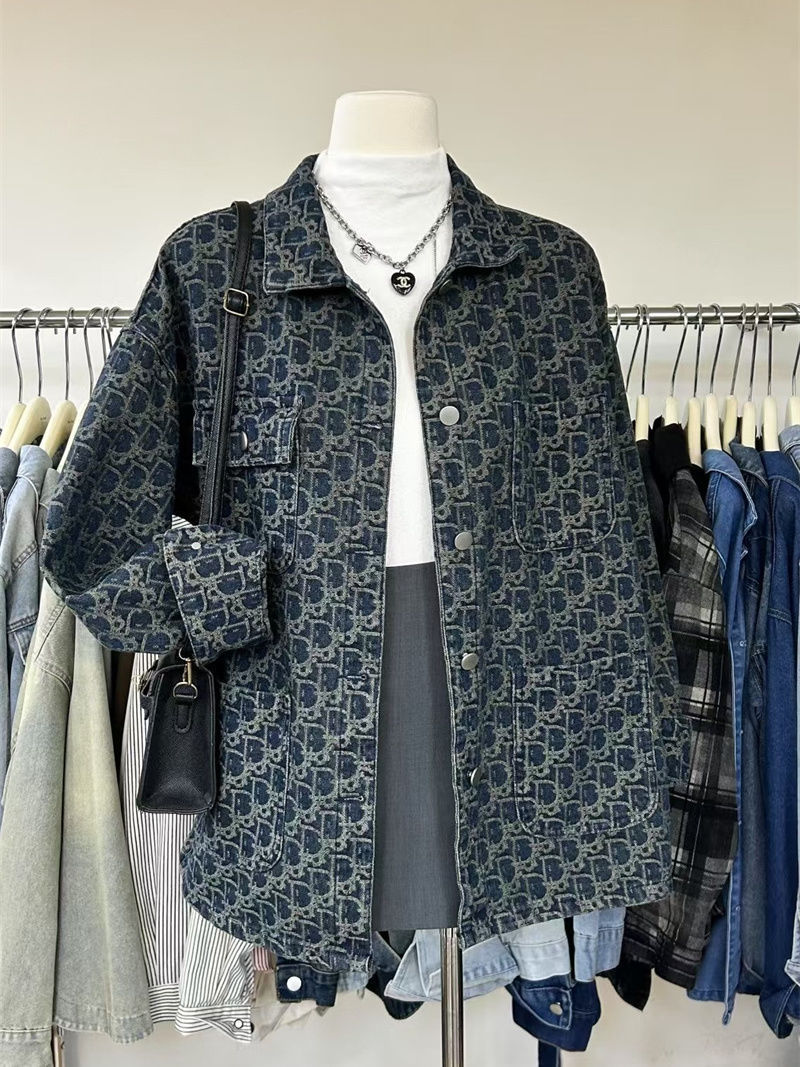 여성을위한 미국 하이 스트리트 복고풍 데님 재킷 2025 새로운 디자인 틈새 봄, 가을 다목적 프린트 재킷 탑스토어 가기
