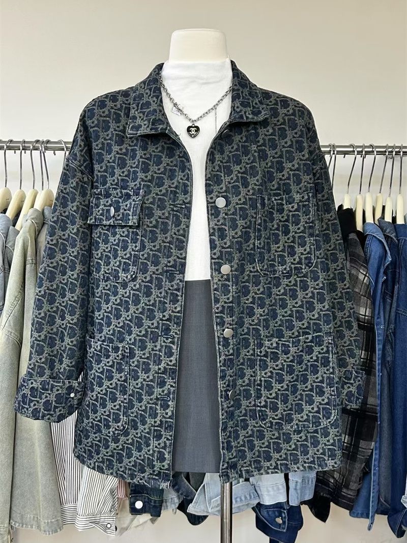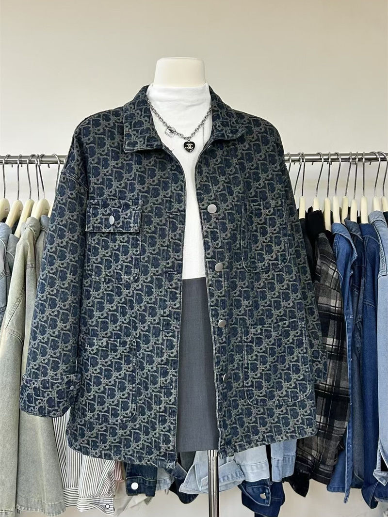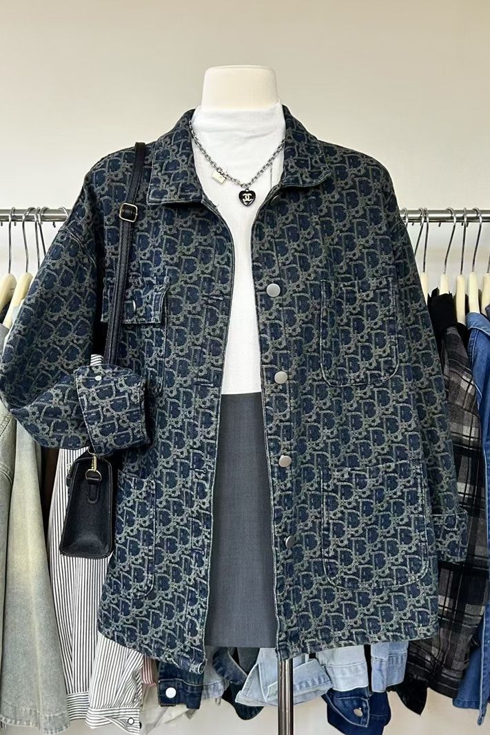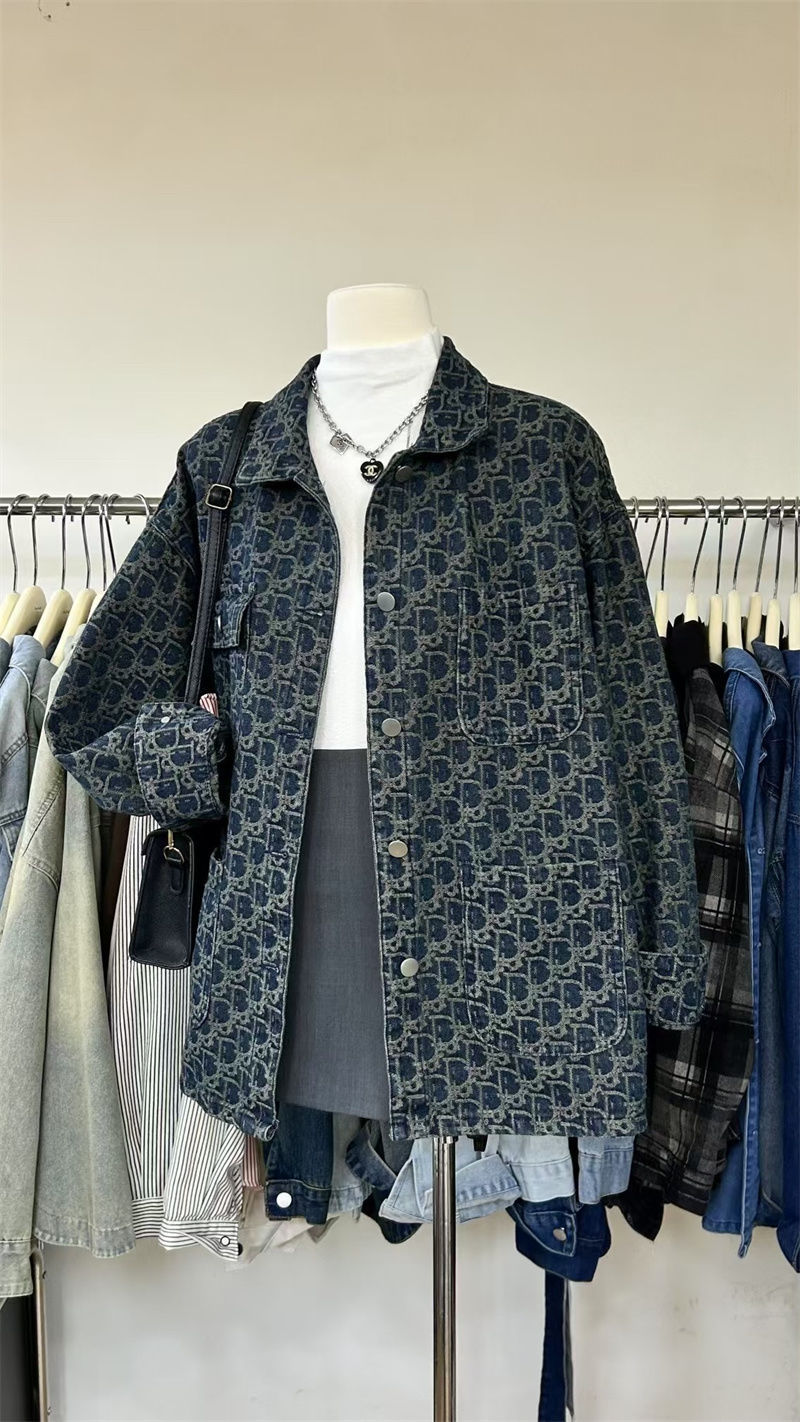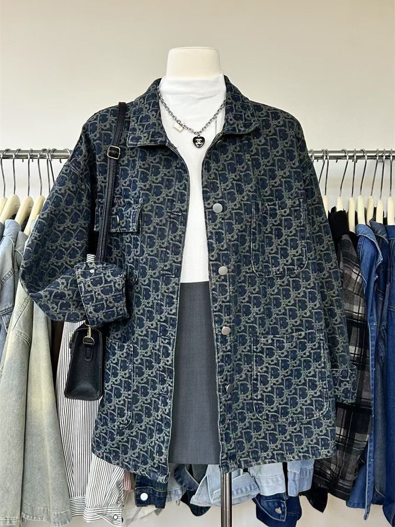 여성을위한 미국 하이 스트리트 복고풍 데님 재킷 2025 새로운 디자인 틈새 봄, 가을 다목적 프린트 재킷 탑스토어 가기