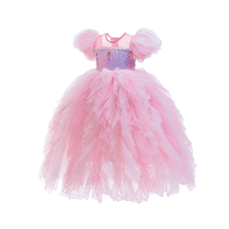 2025 겨울왕국 소녀 생일 드레스 여름 어린이 날 새로운 스타일 어린이 스팽글 공주 거즈 스커트 버블