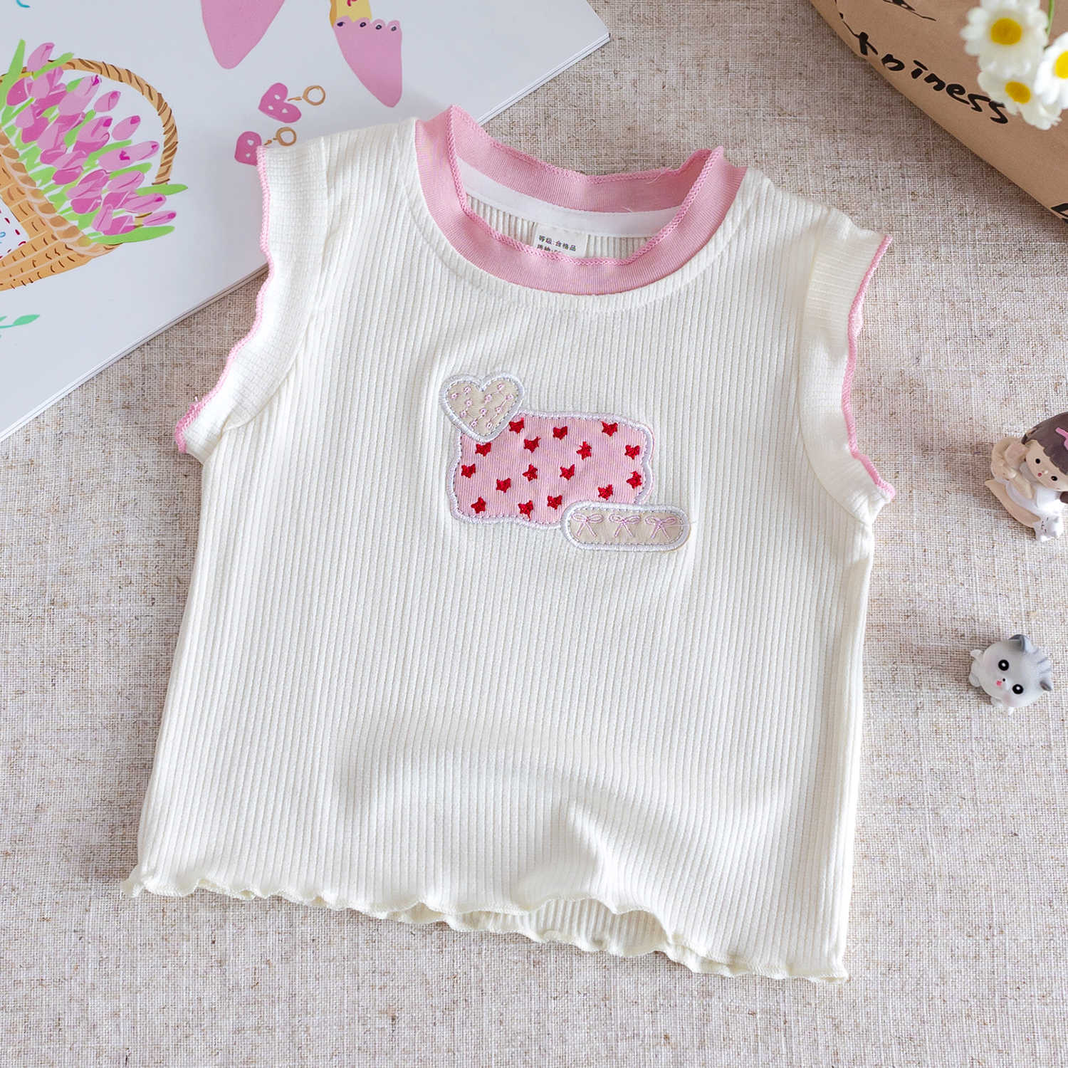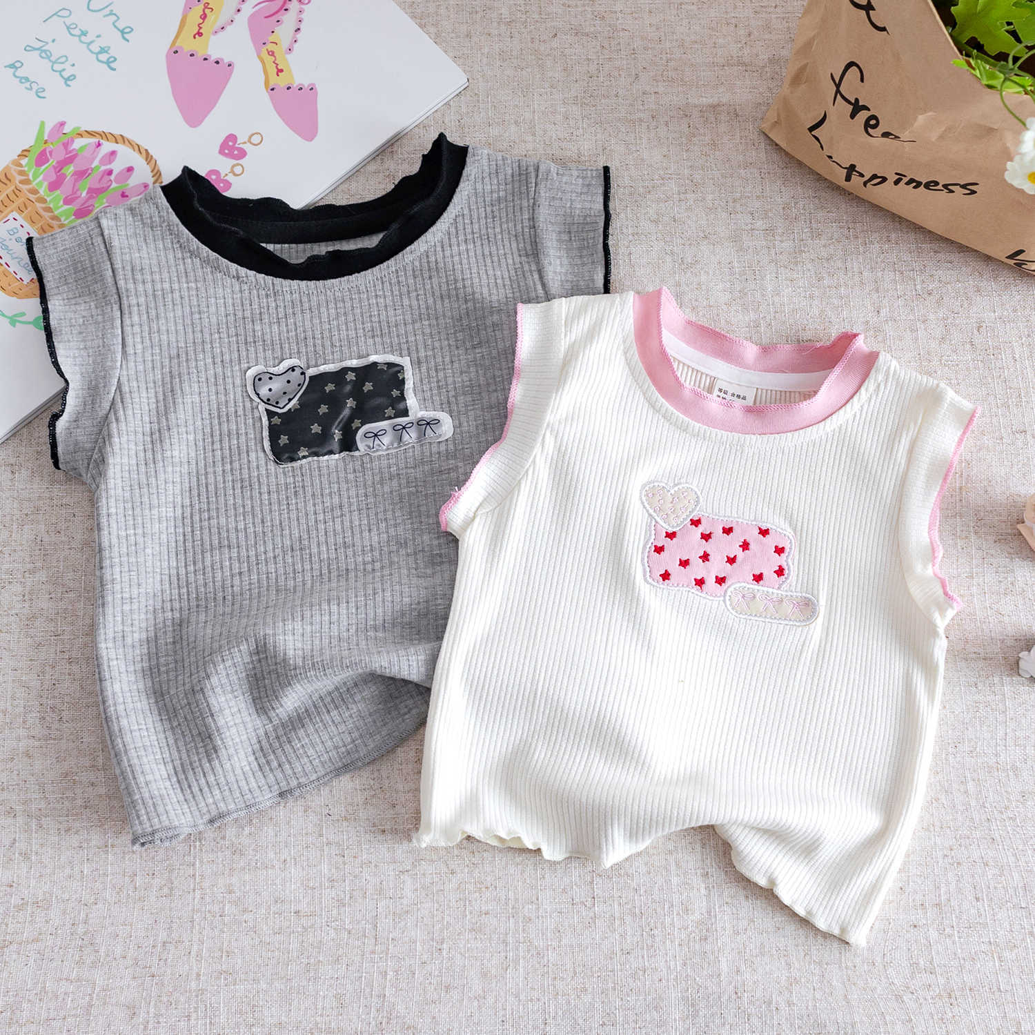 여자 조끼 2025 새로운 여름 어린이 한국 스타일 달콤한 귀여운 만화 탑 아기 소녀의 스타일리시한베이스 셔츠스토어 가기