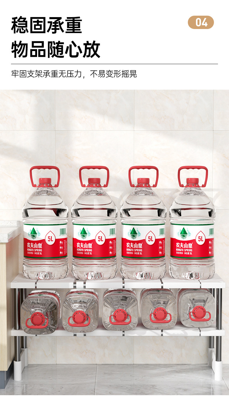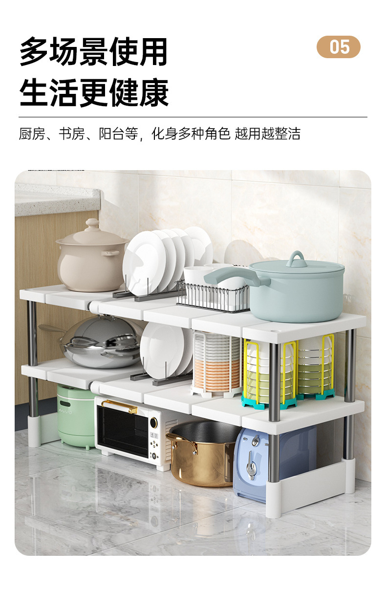주방 다층 개폐식 싱크대 아래 수납 선반 캐비닛 계층형 수납 선반 냄비 및 그릇 전자 레인지 다기능 선반스토어 가기