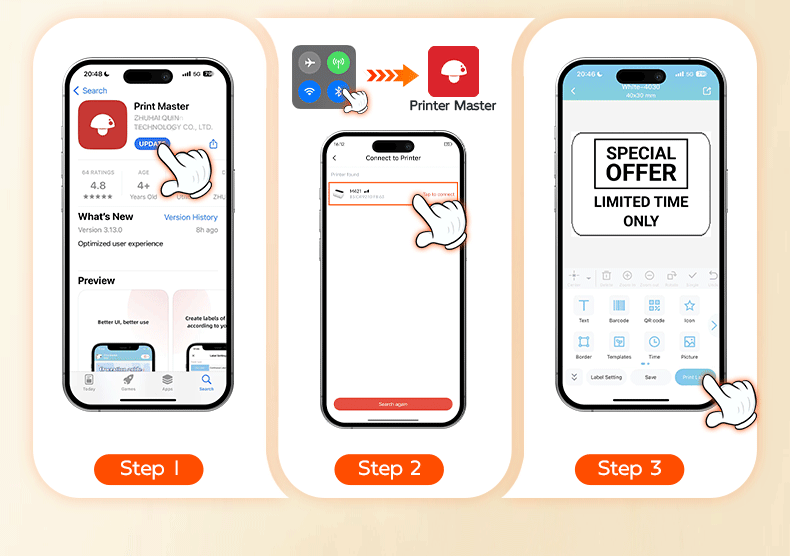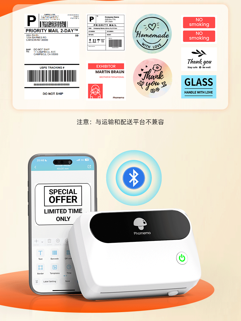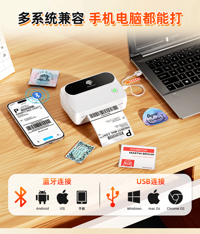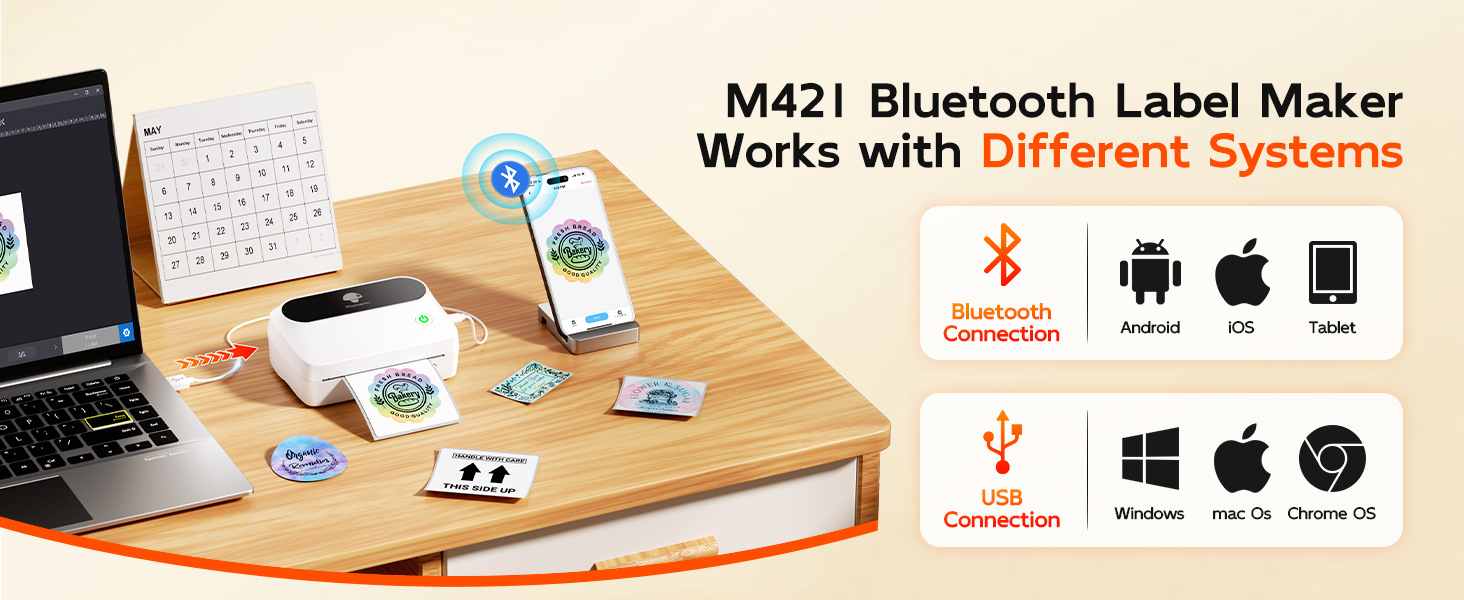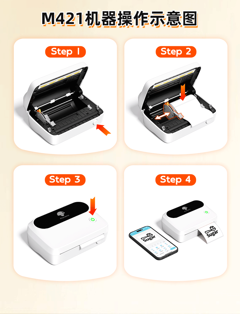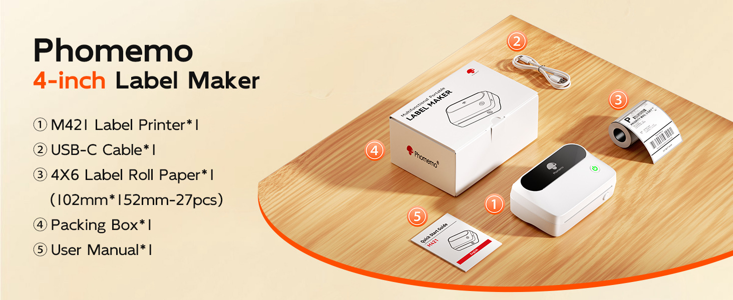 Phomemo M421 상업용 Bluetooth 라벨 프린터는 휴대폰과 연결할 수 있으며 다양한 종류의 통합 특급 주문 프린터입니다.스토어 가기