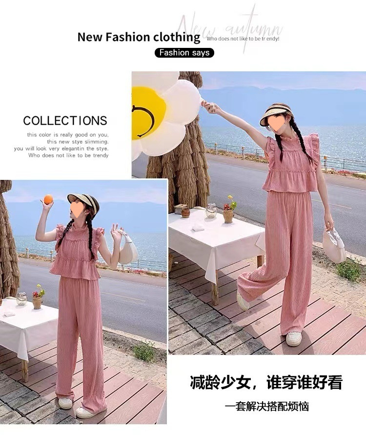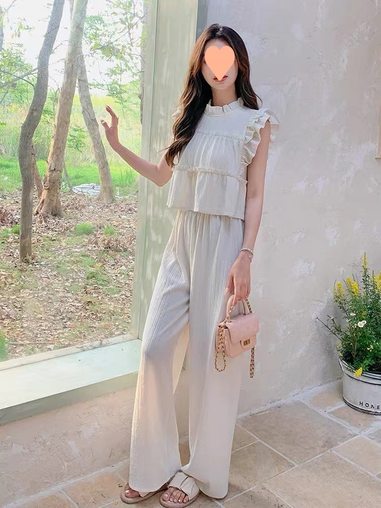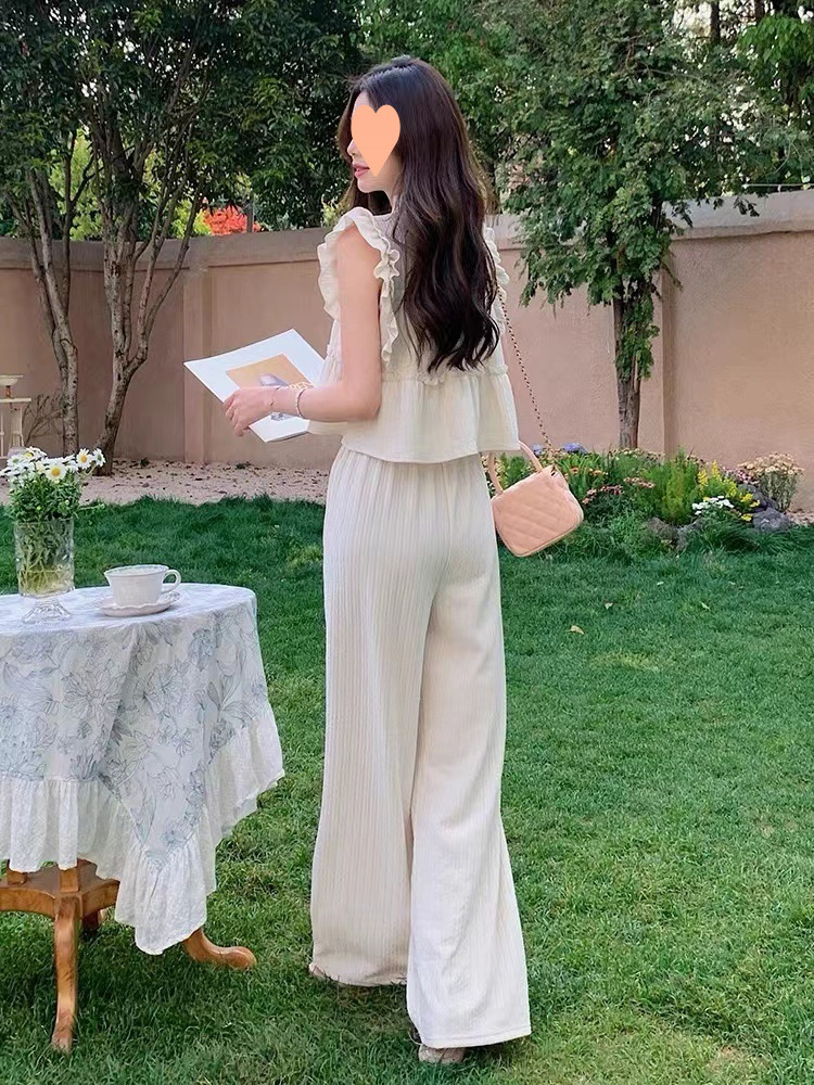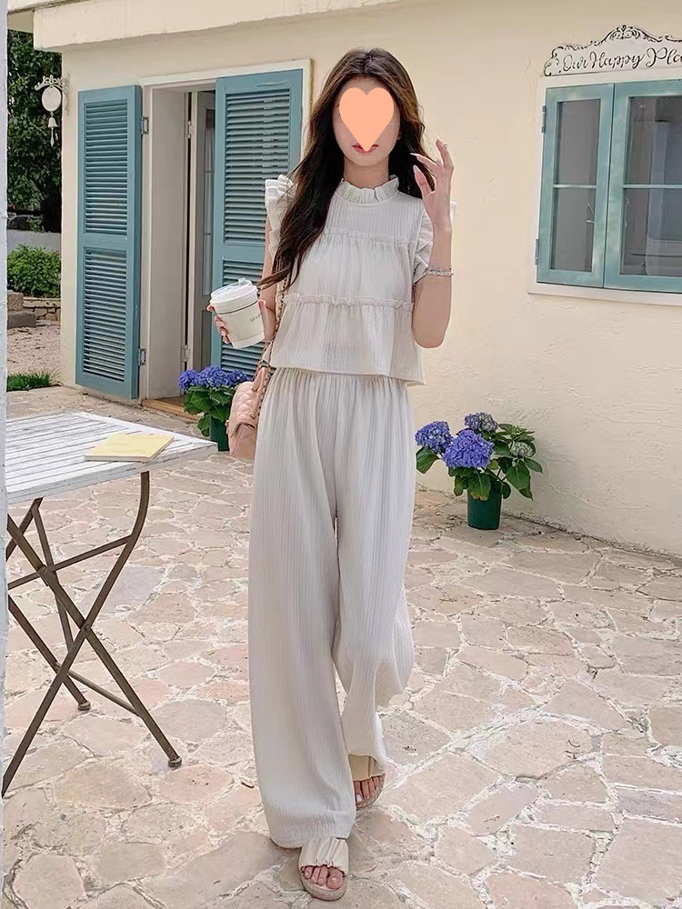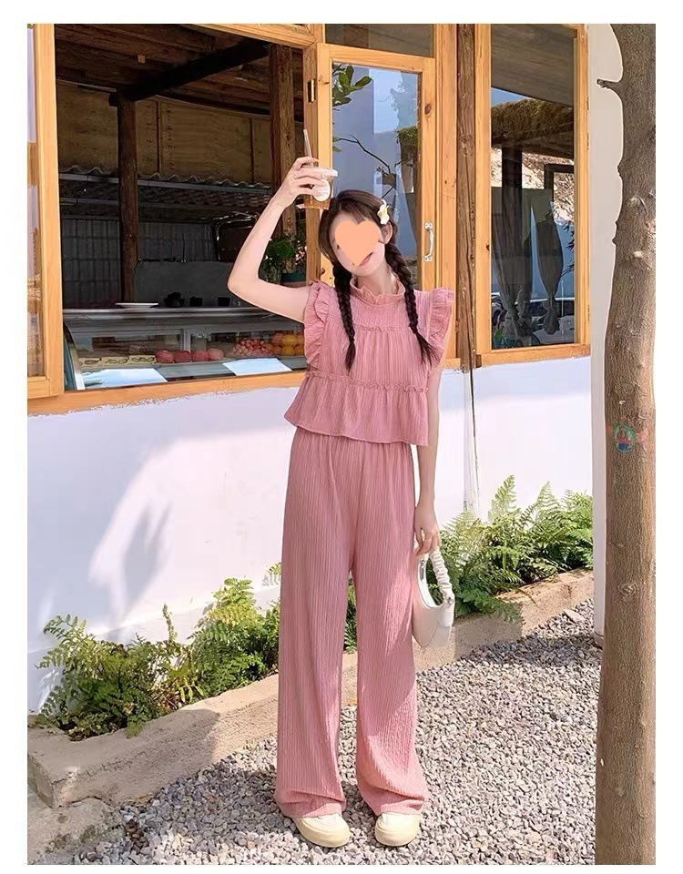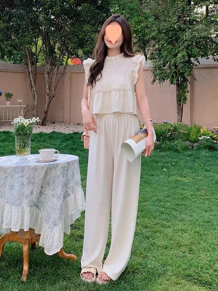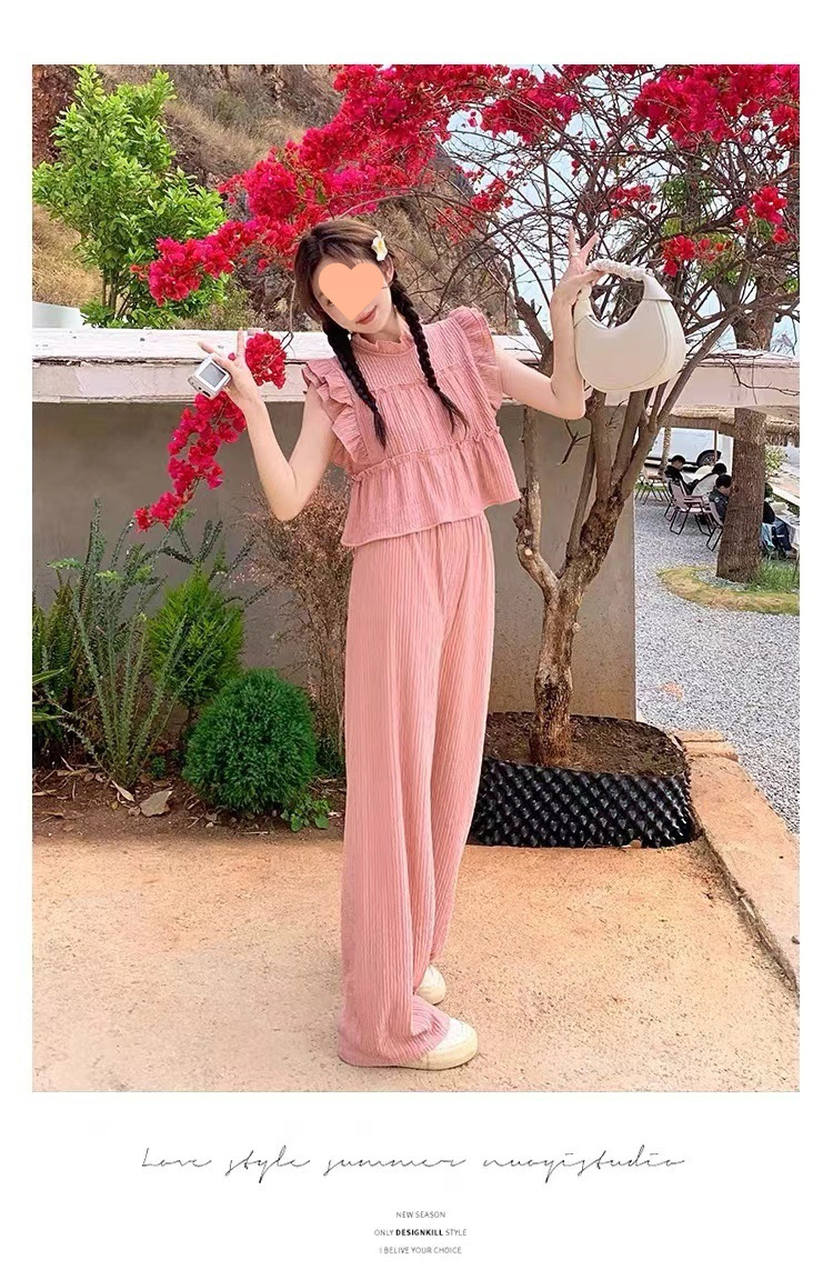패션 세트 여성 여름 새로운 2024 민소매 캐주얼 탑 루즈 와이드 레그 팬츠 바지 투피스 세트