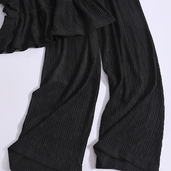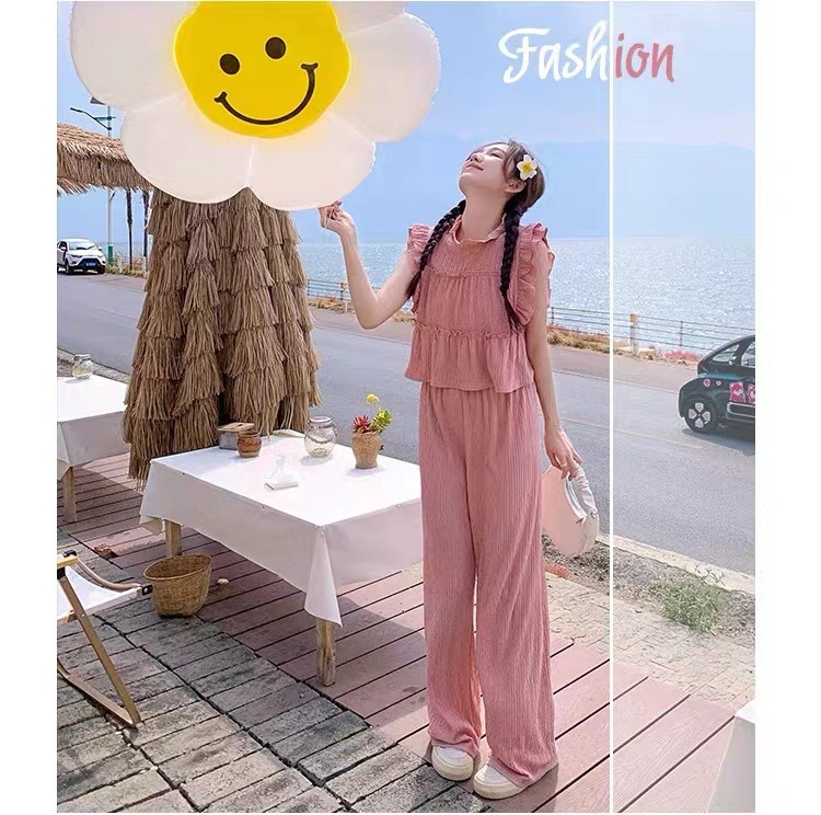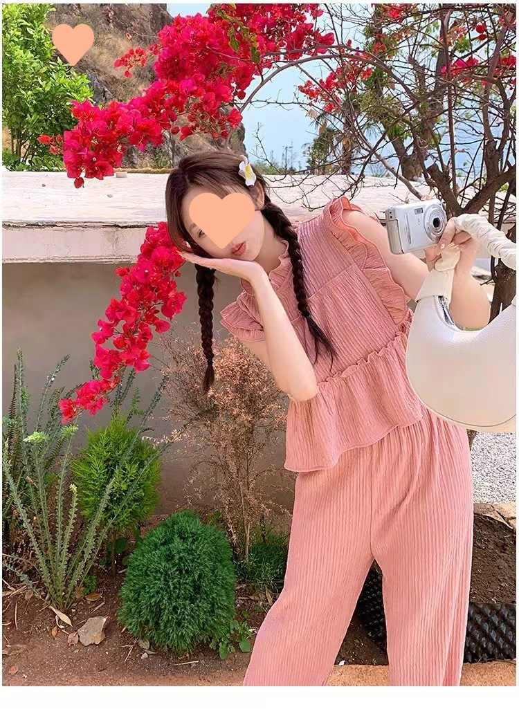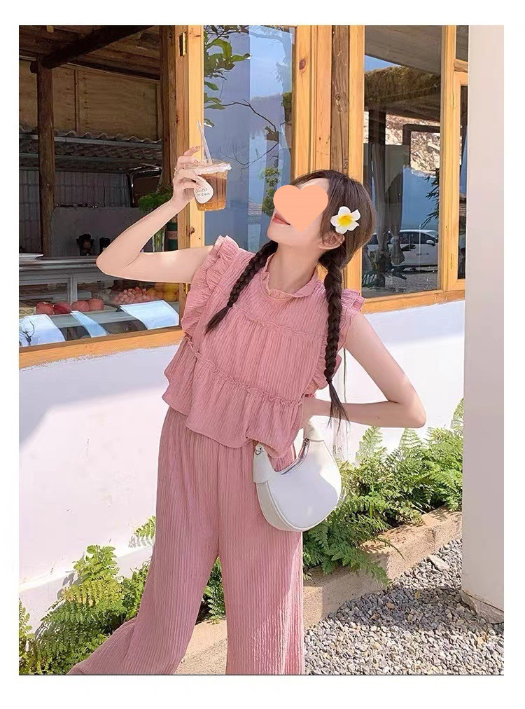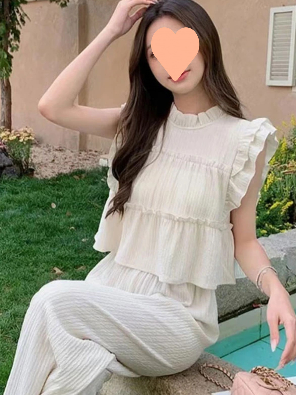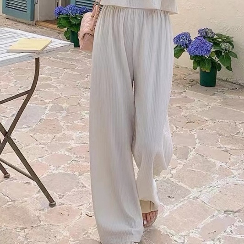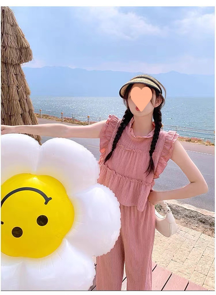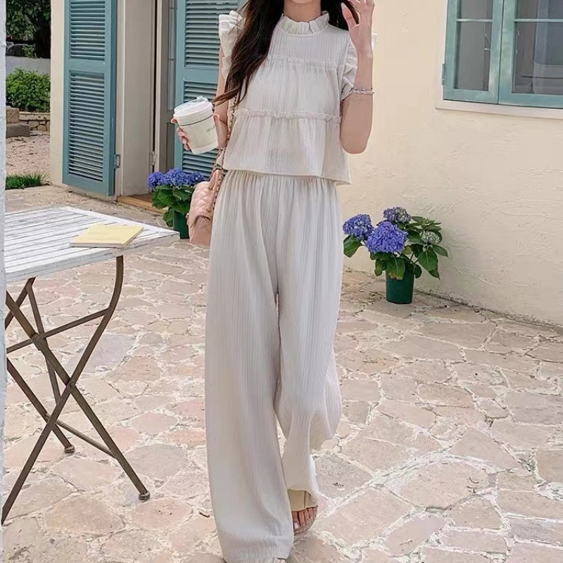 패션 세트 여성 여름 새로운 2024 민소매 캐주얼 탑 루즈 와이드 레그 팬츠 바지 투피스 세트