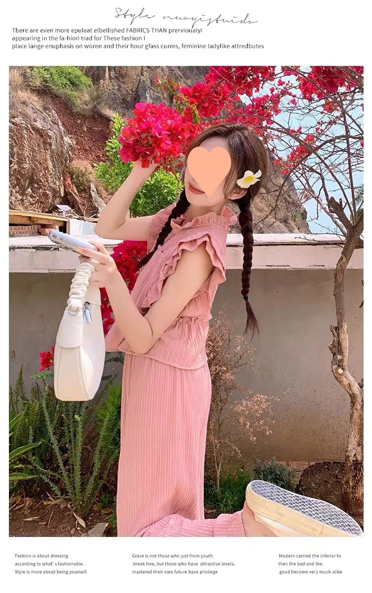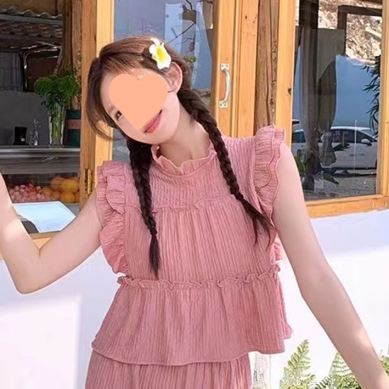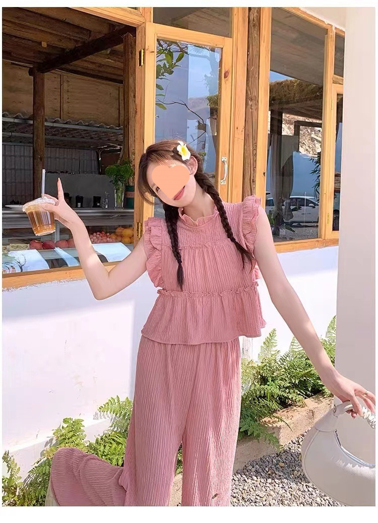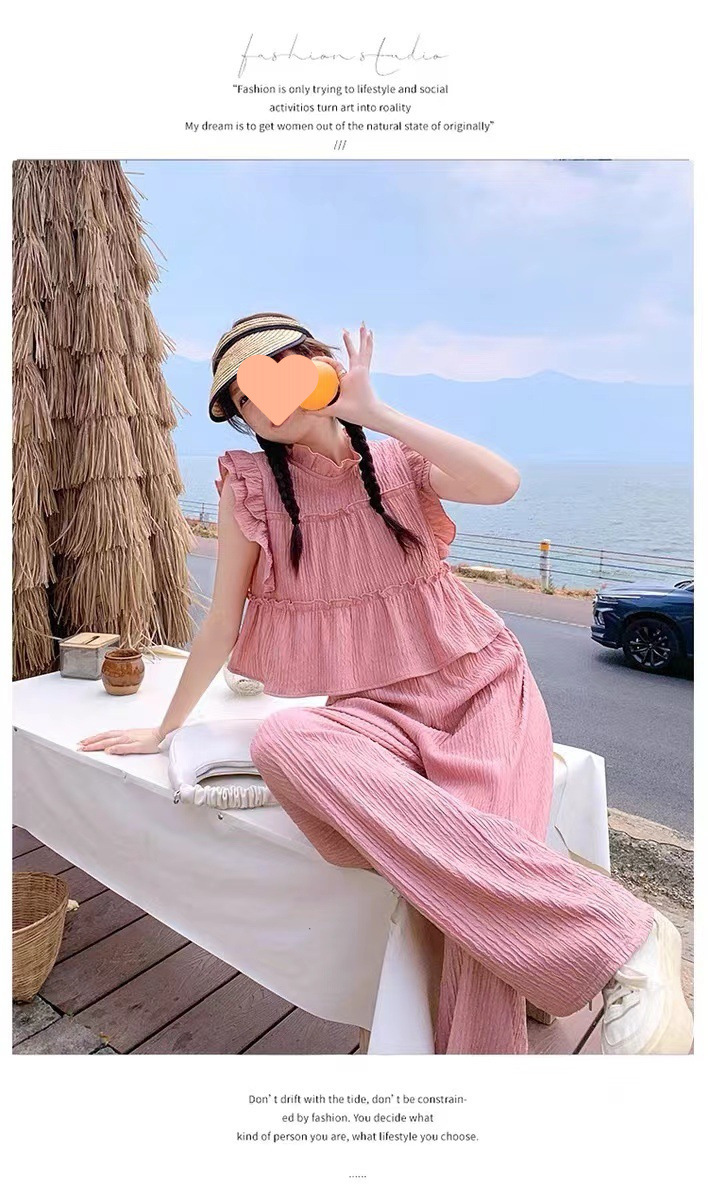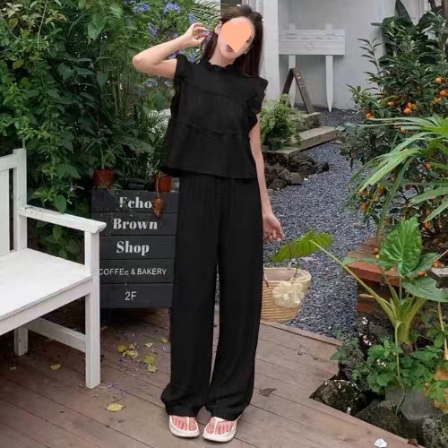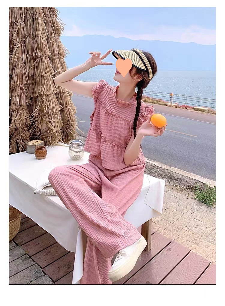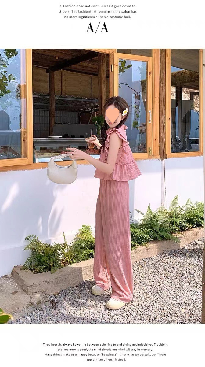 패션 세트 여성 여름 새로운 2024 민소매 캐주얼 탑 루즈 와이드 레그 팬츠 바지 투피스 세트스토어 가기