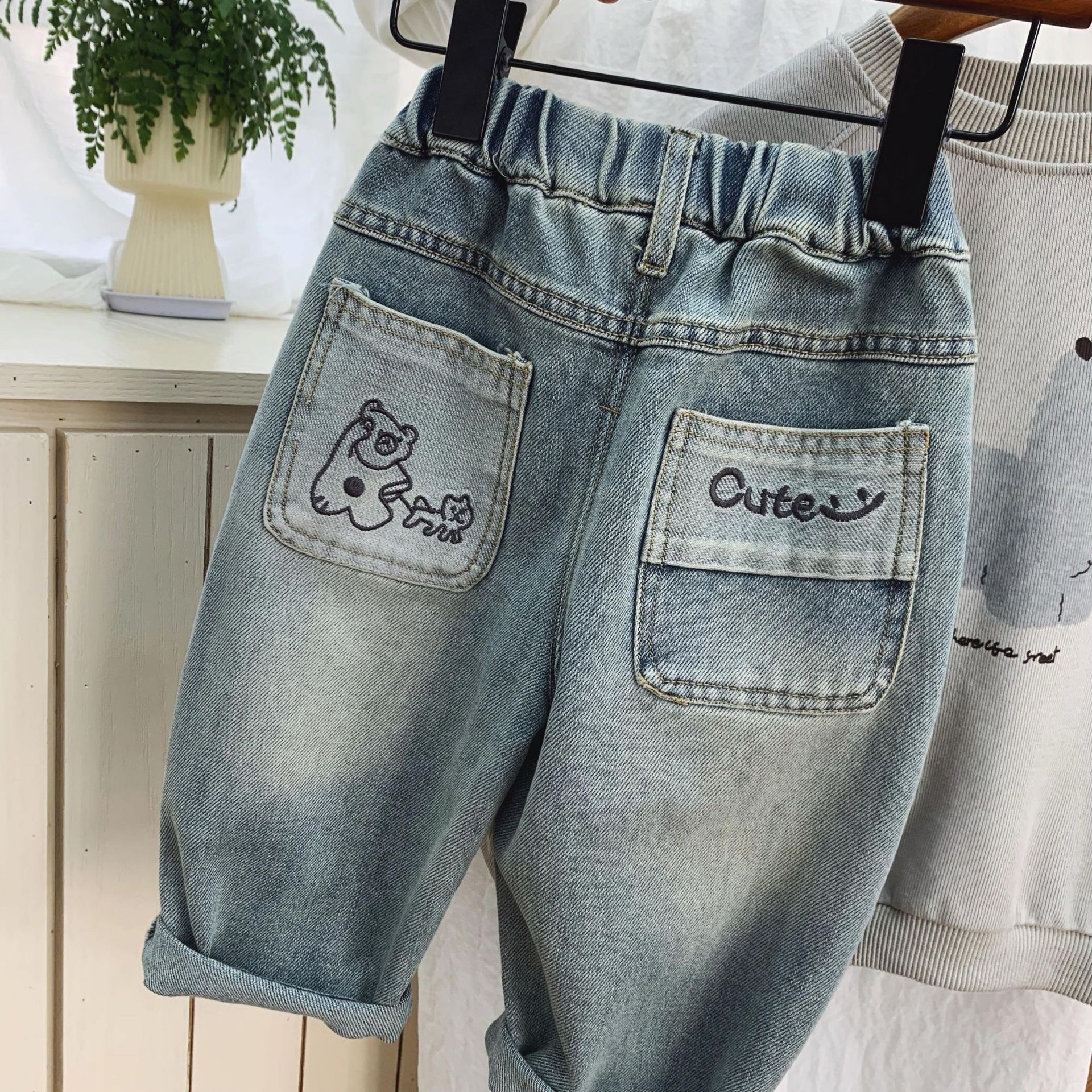 어린이 소프트 청바지 루즈 버전 중소 어린이 봄, 가을 소녀 캐주얼 바지 소년 의류 한국 스타일 아기 바지스토어 가기