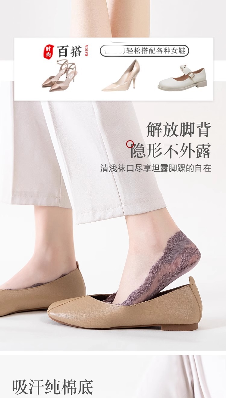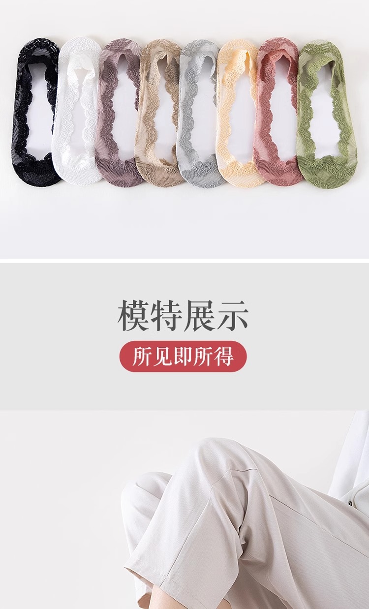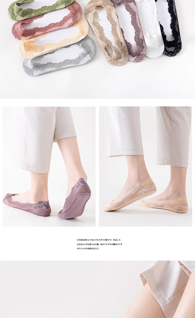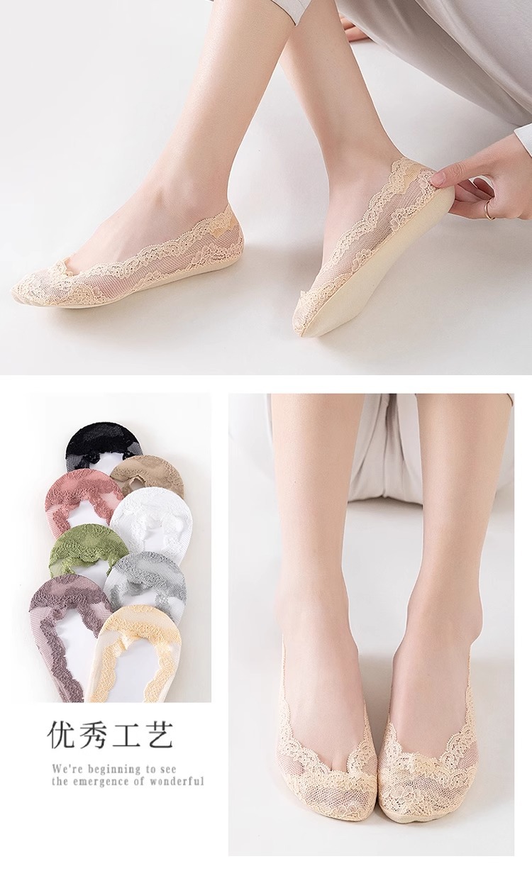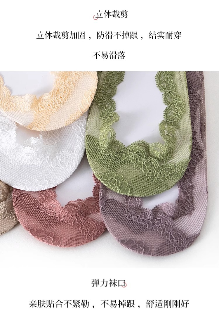 여성용 레이스 보트 양말, 단색 여름 얇은 실리콘 미끄럼 방지, 여름용 얕은 입 크로스 레이스 보이지 않는스토어 가기