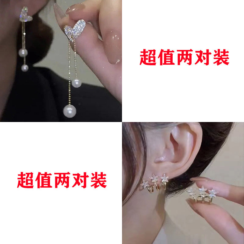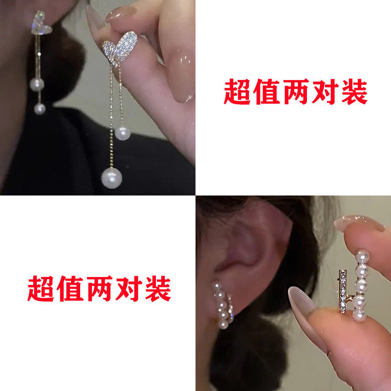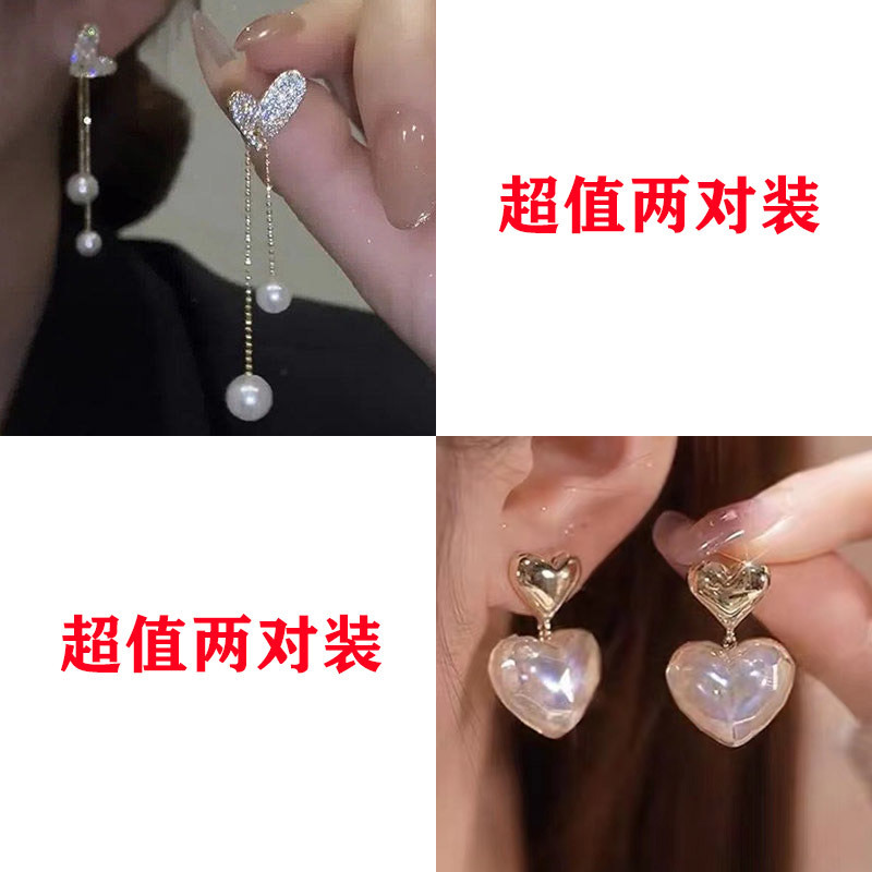 • 러브 태슬 귀걸이 + 라인스톤 진주 귀걸이 [2쌍 세트]