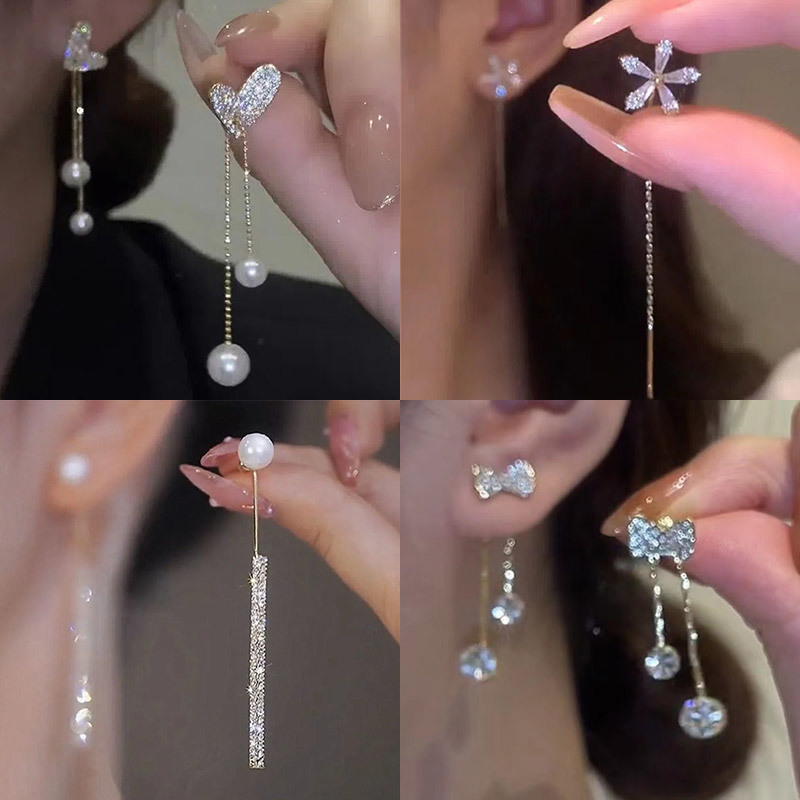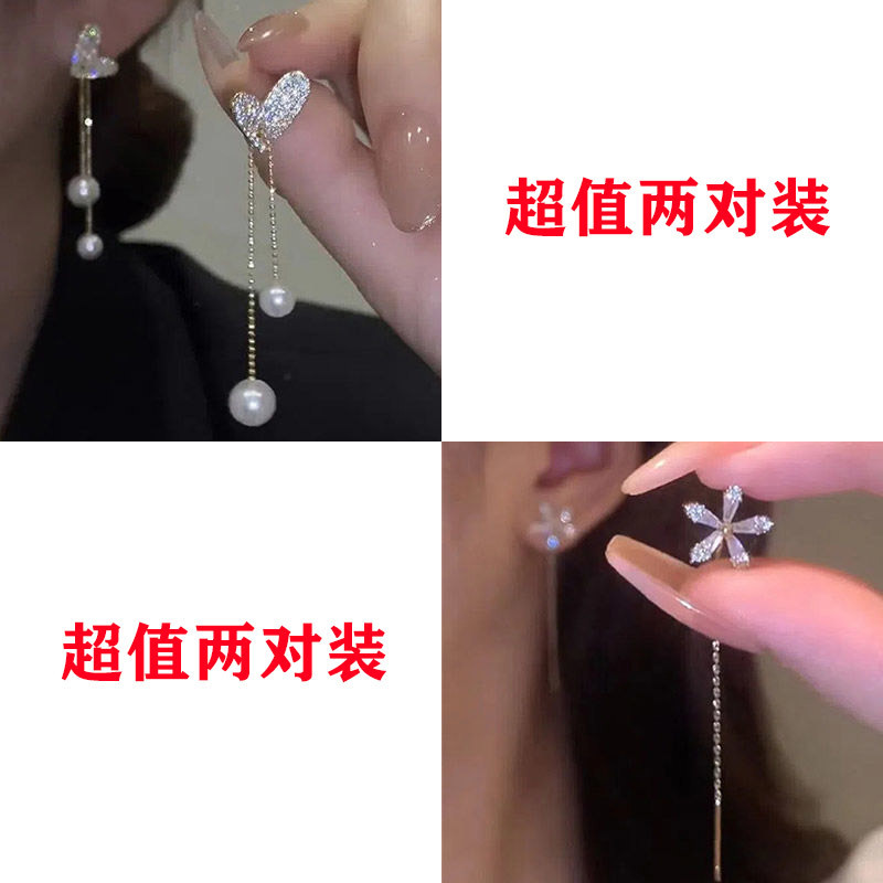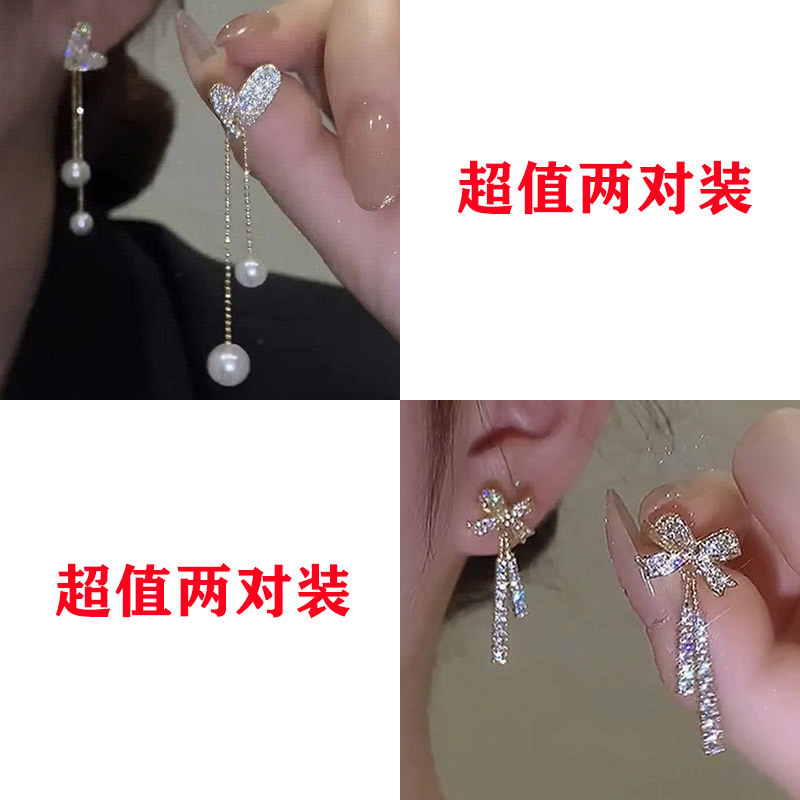 • 러브 태슬 귀걸이 + 지르콘 태슬 귀걸이 [2쌍 세트]