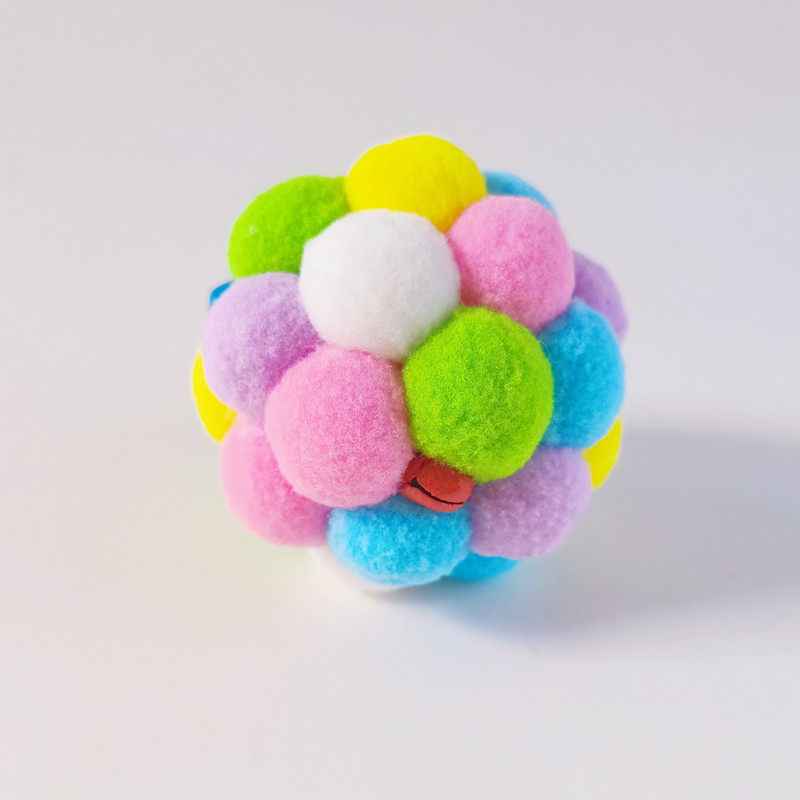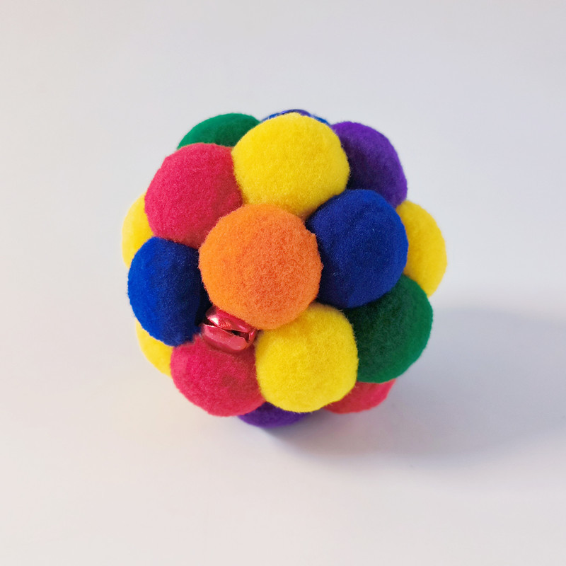 봉제 공, 큰 종, 소리가 나는 다채로운 고양이 장난감, 무지개 같은 재미있는 고양이 공 모양의 자기 자극 및 지루함 해소 애완 동물 공