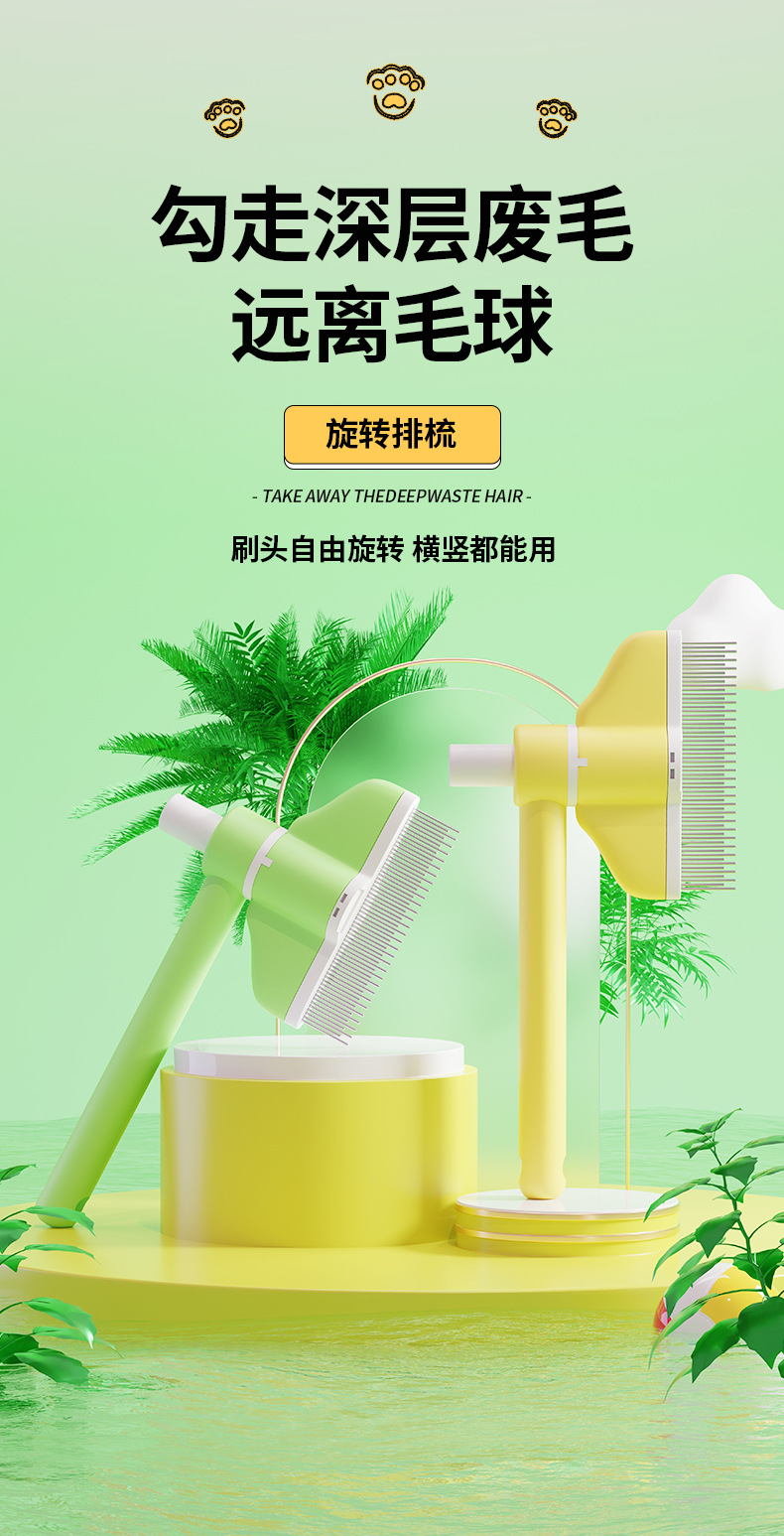 고양이와 강아지를 위한 다기능 애완동물 빗, 긴 머리카락과 밀집한 치아가 있는 마사지 빗, 매듭을 풀고 부동한 털을 제거하는 원클릭 빗스토어 가기