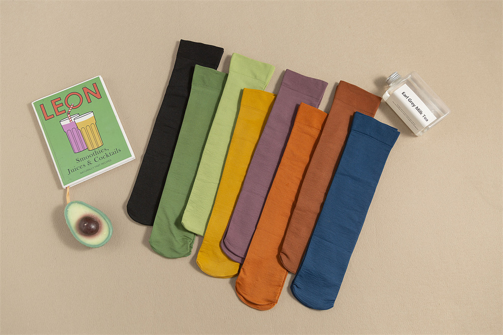 여성용 캔디 컬러 종아리 양말 봄 여름 면 종아리 압축 양말 하프 레그 양말 컬러 도파민 스타킹 스포츠 양말스토어 가기