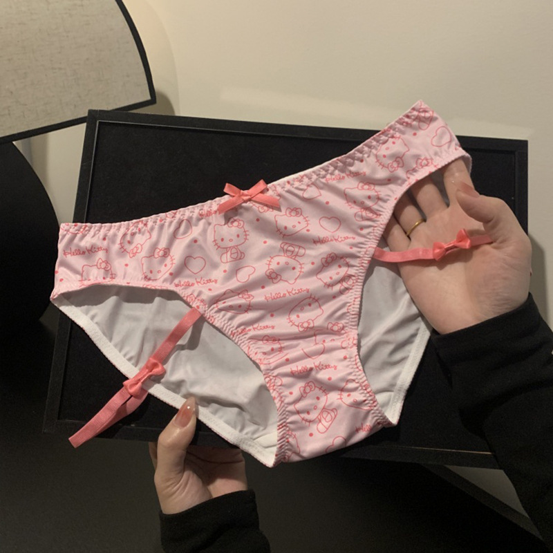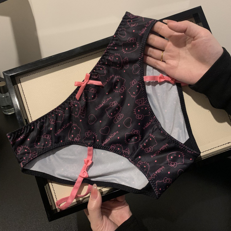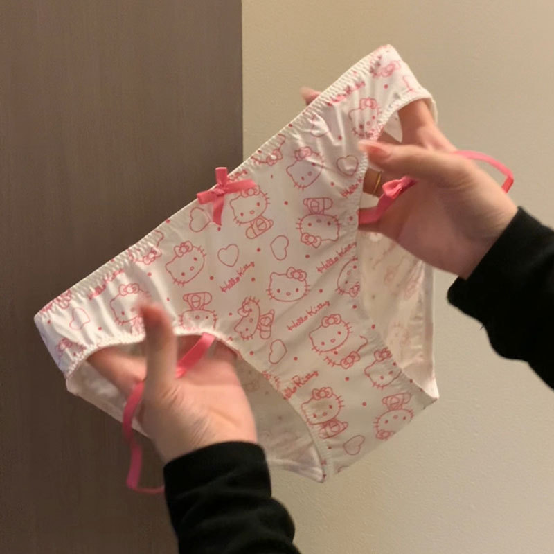 Dropshipping 순수한 욕망 스타일 kt 고양이 인쇄 달콤한 속옷 여성 여름 섹시한 레이스 낮은 허리 팬티 순수 코튼 가랑이스토어 가기