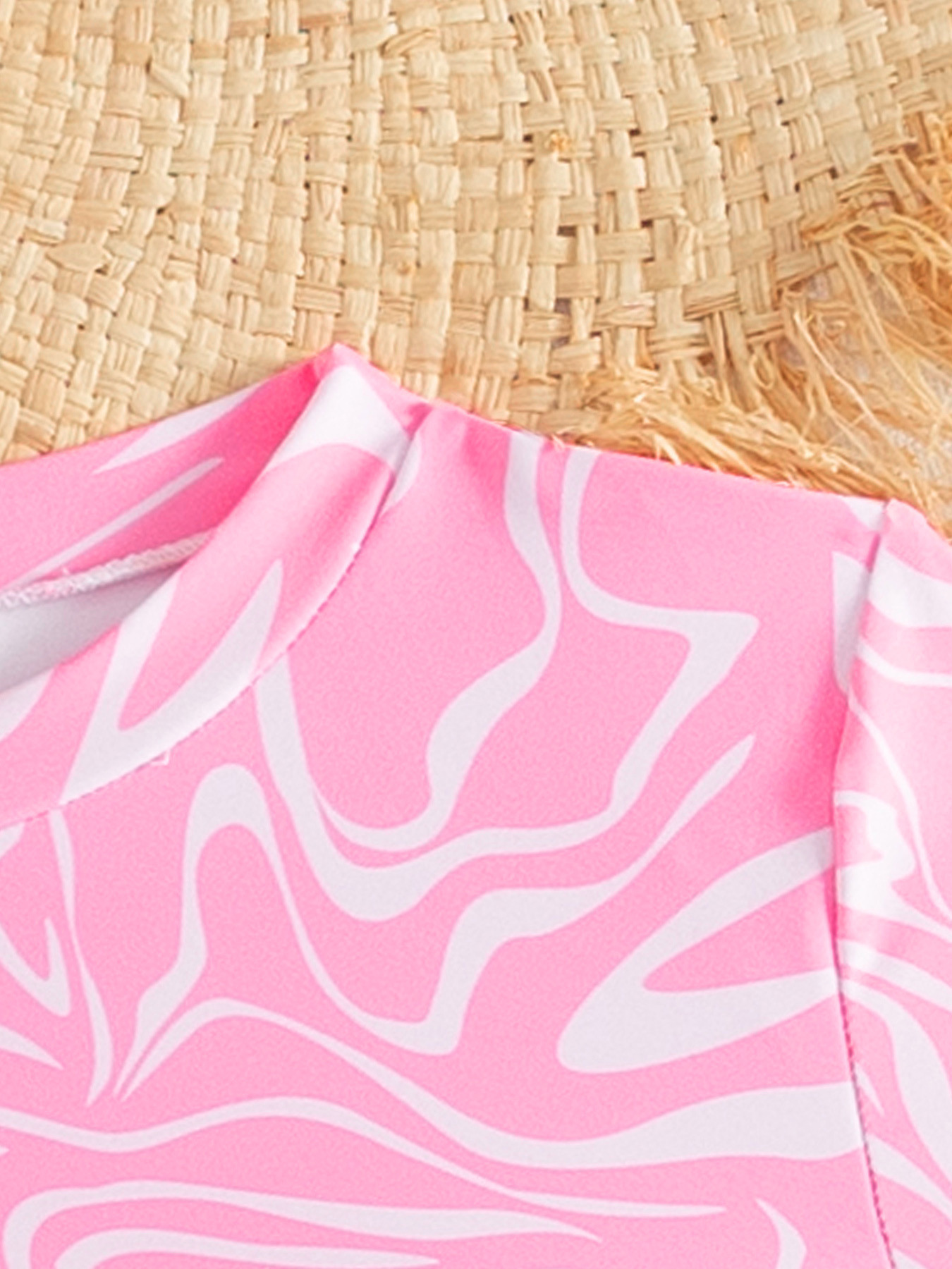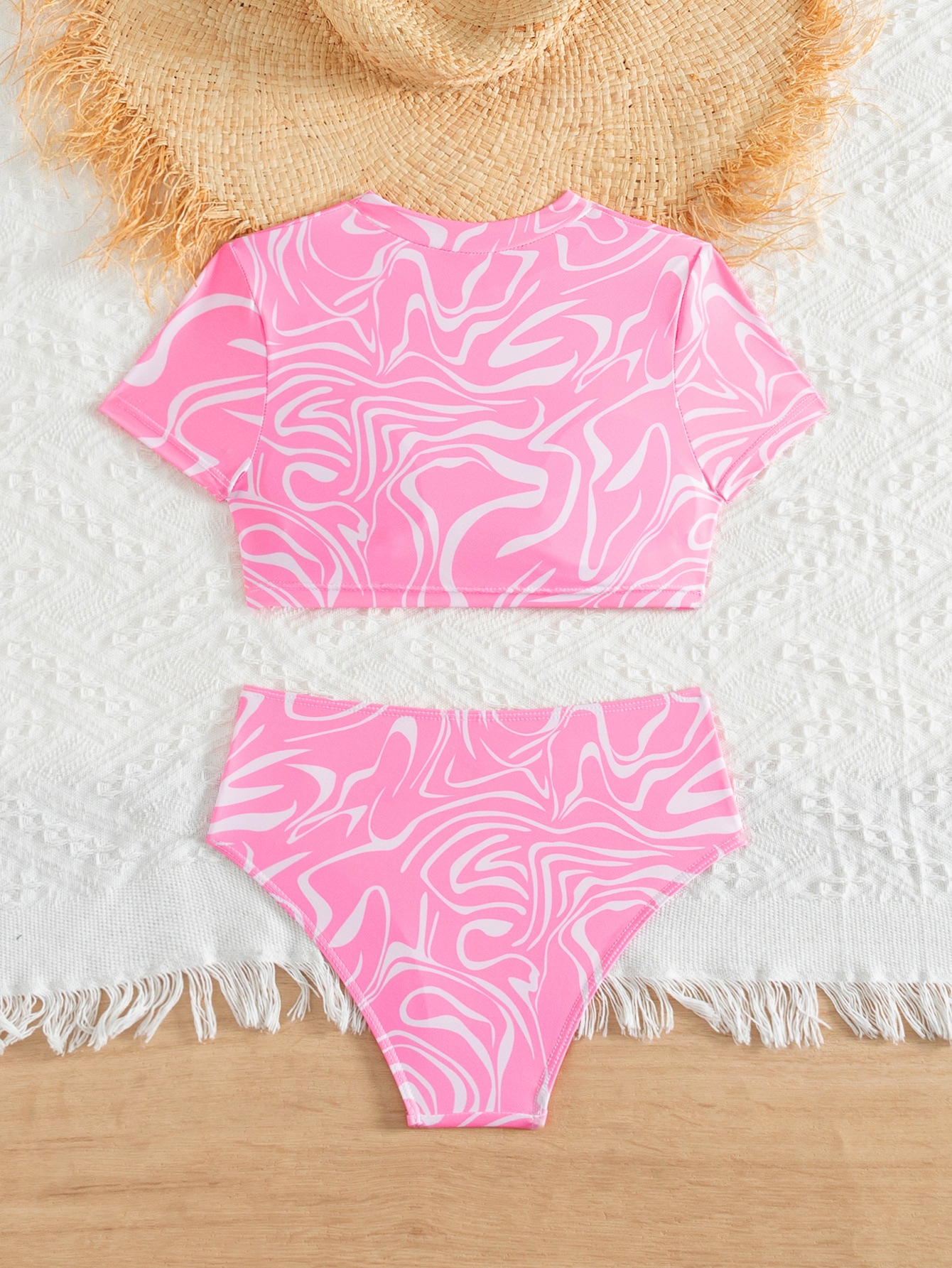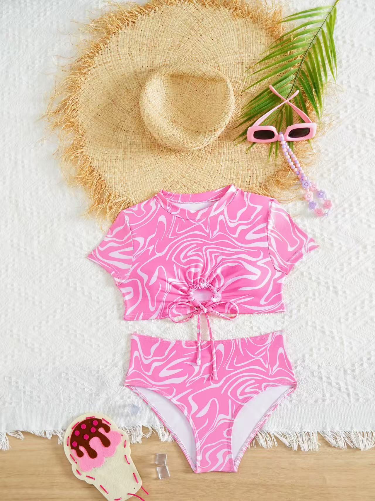 2025 새로운 대외 무역 반팔 소녀 수영복 Amazon 유럽과 미국 중대형 어린이 투피스 비키니 스플릿 수영복