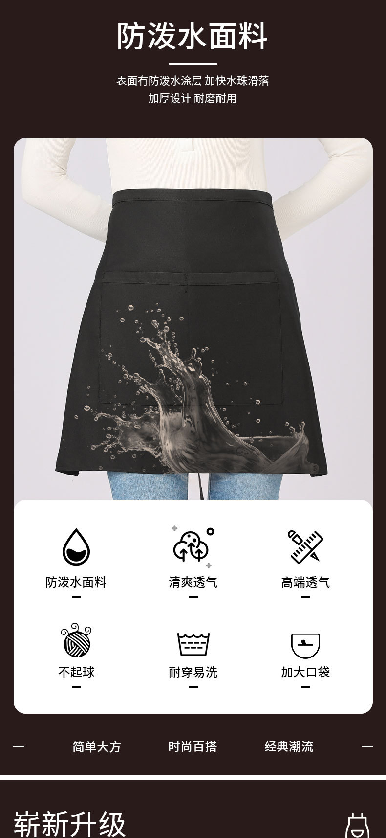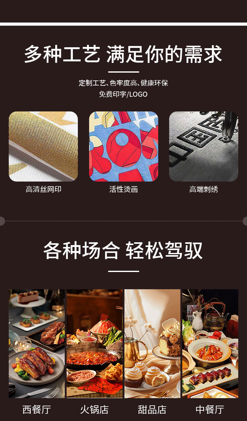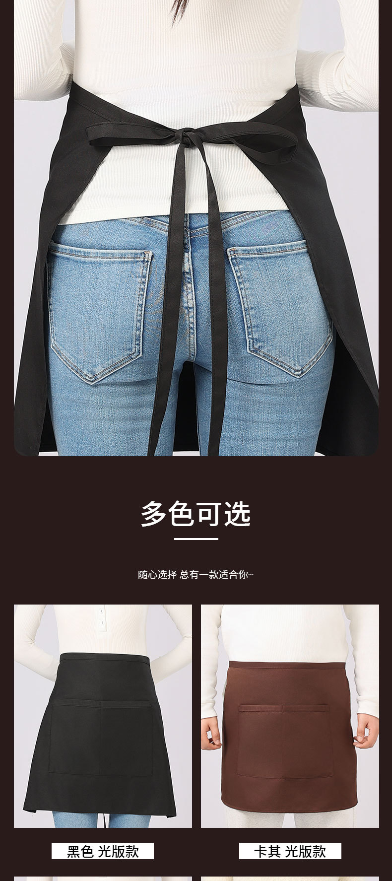 단색 반치마 앞치마 남녀공용 호텔 및 전골집 작업복 가사용 반치마 맞춤형 로고 인쇄 방수