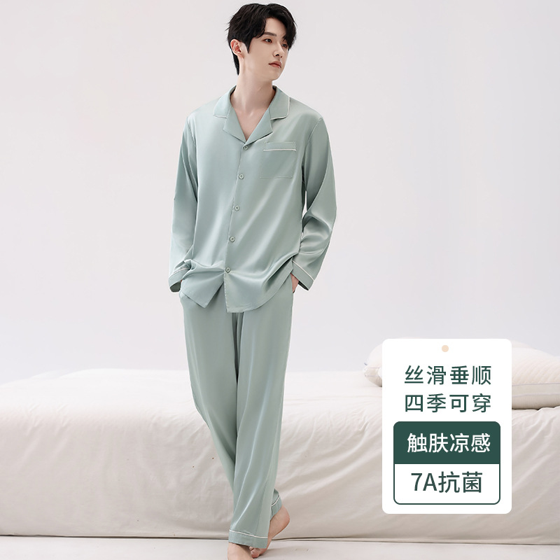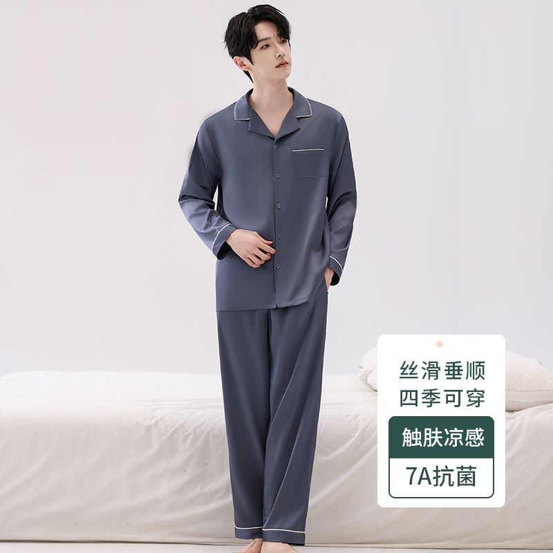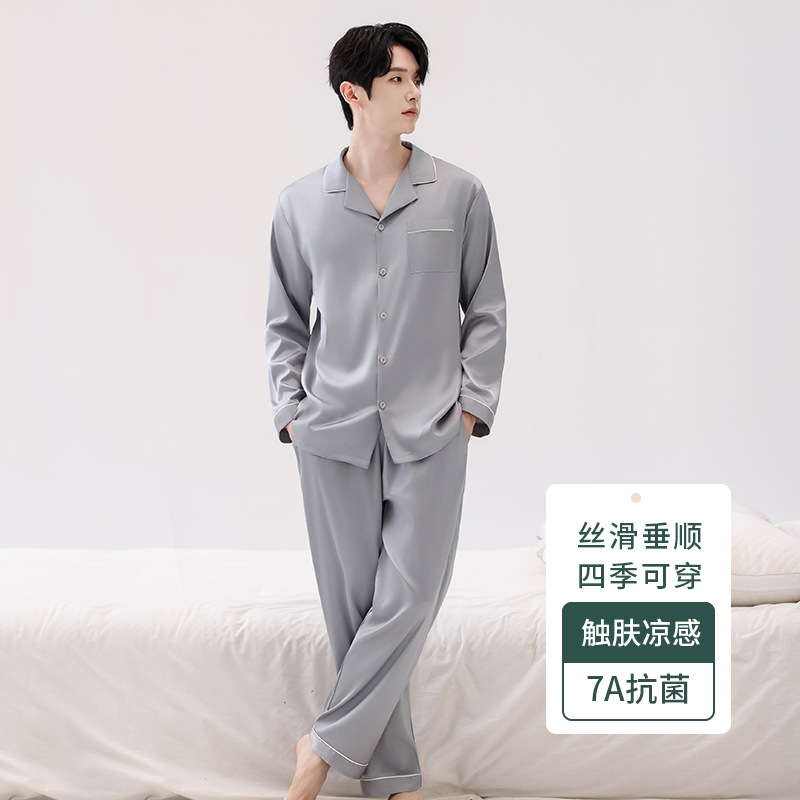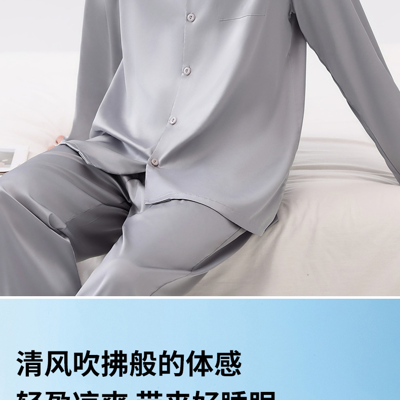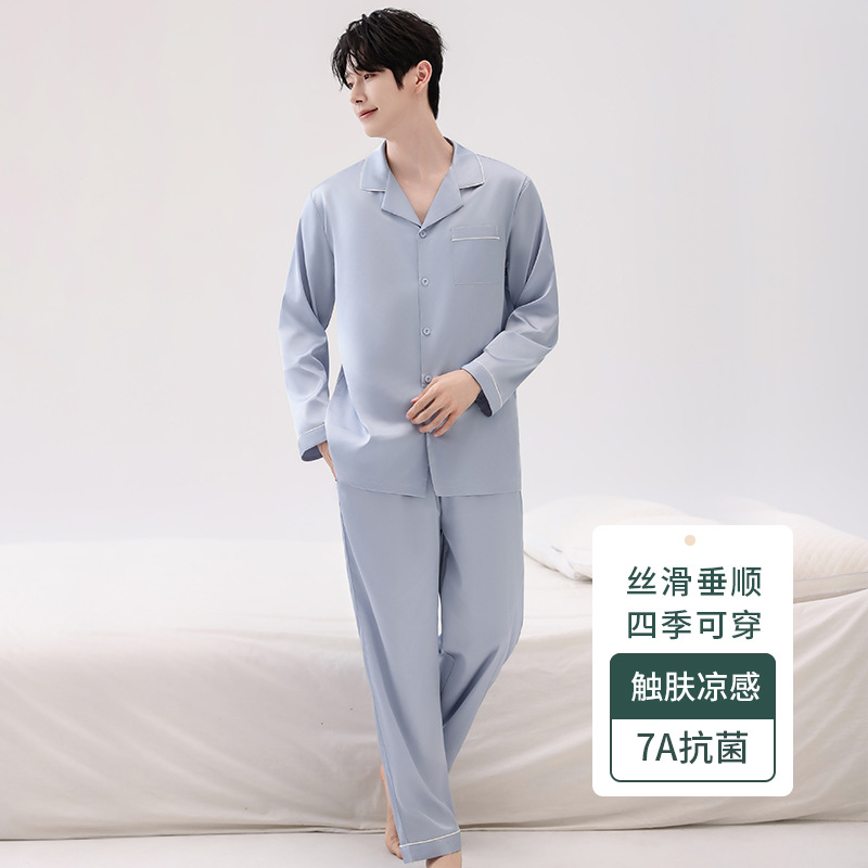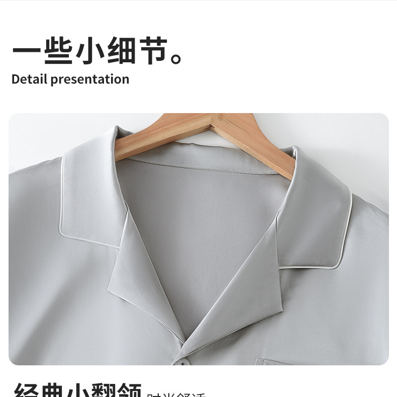 남성용 잠옷, 남성용 홈웨어, 아이스 실크 시원한 항균 여름 실크 시뮬레이션 실크 투피스 에어컨 슈트, 외출용스토어 가기