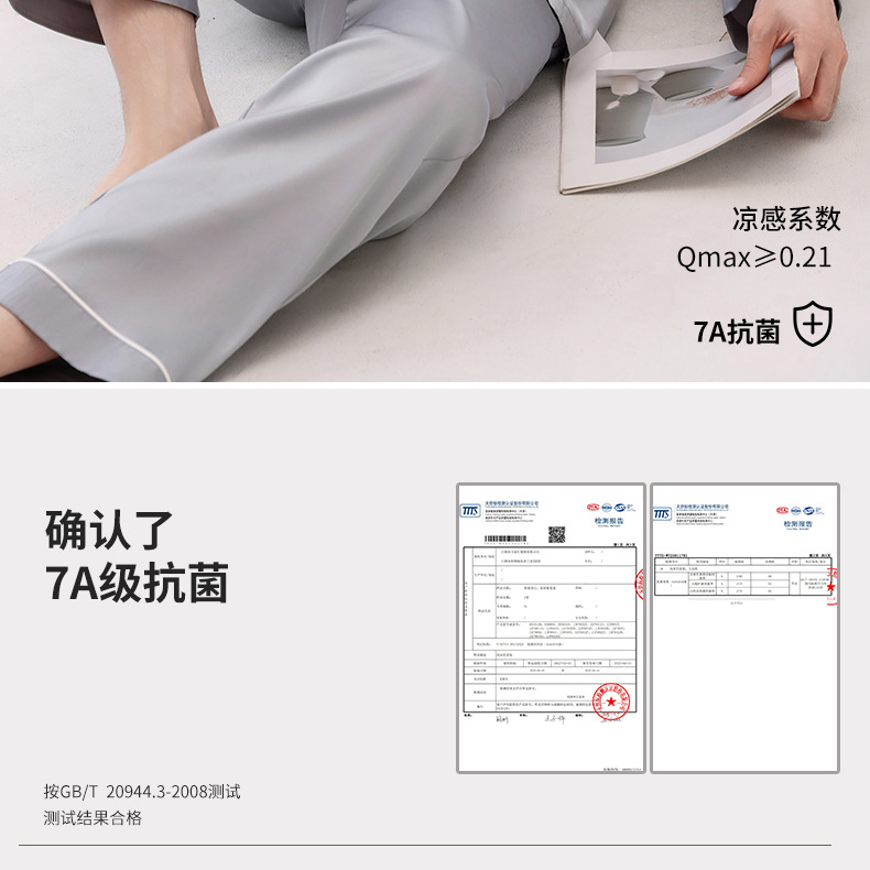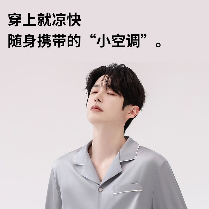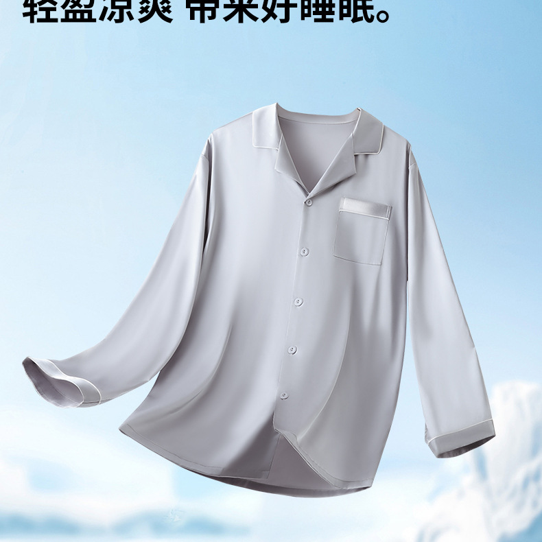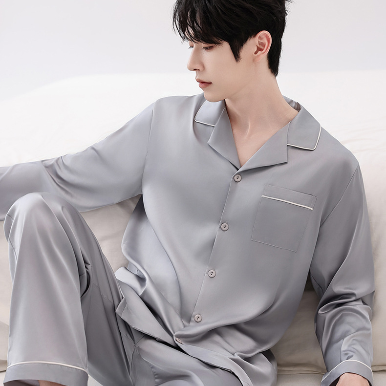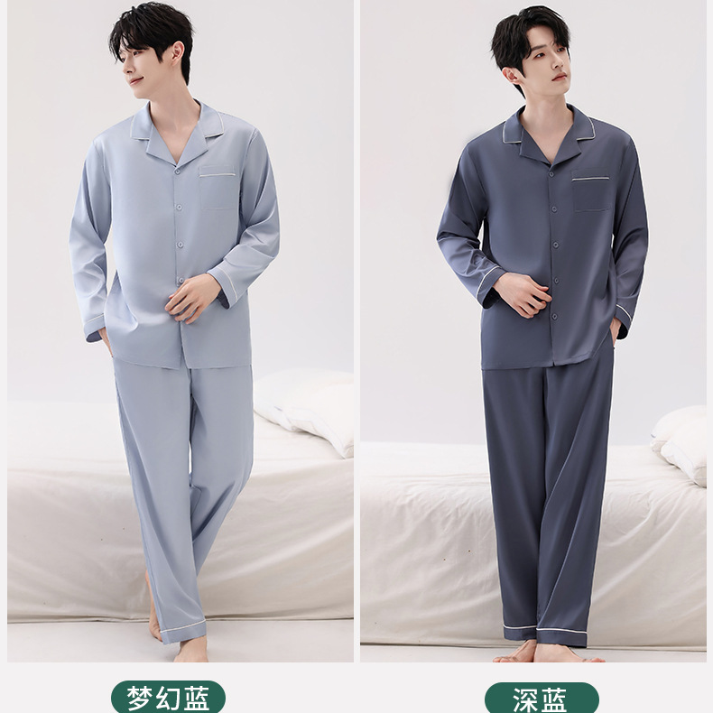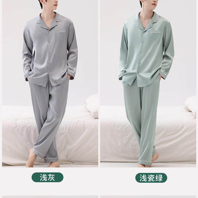 남성용 잠옷, 남성용 홈웨어, 아이스 실크 시원한 항균 여름 실크 시뮬레이션 실크 투피스 에어컨 슈트, 외출용스토어 가기
