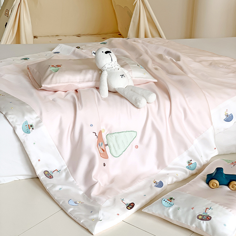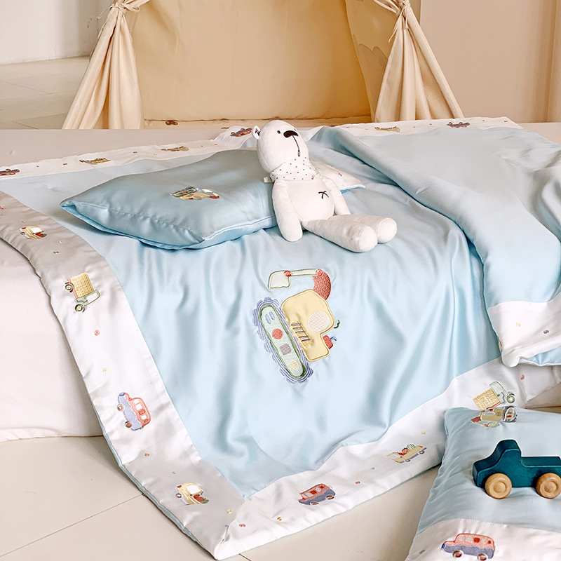 자수 스플라이스 실크 여름 이불 어린이 시원한 원단 에어컨 이불 여름 리오셀 섬유 여름 시원한 이불 얇은 이불