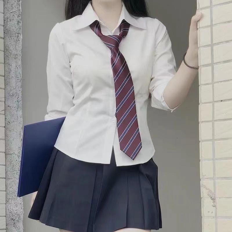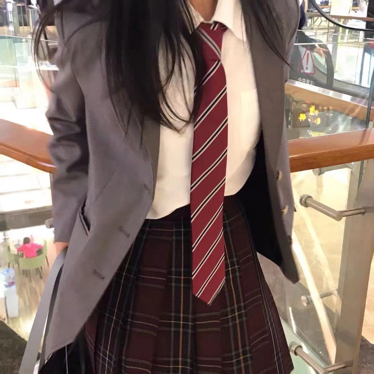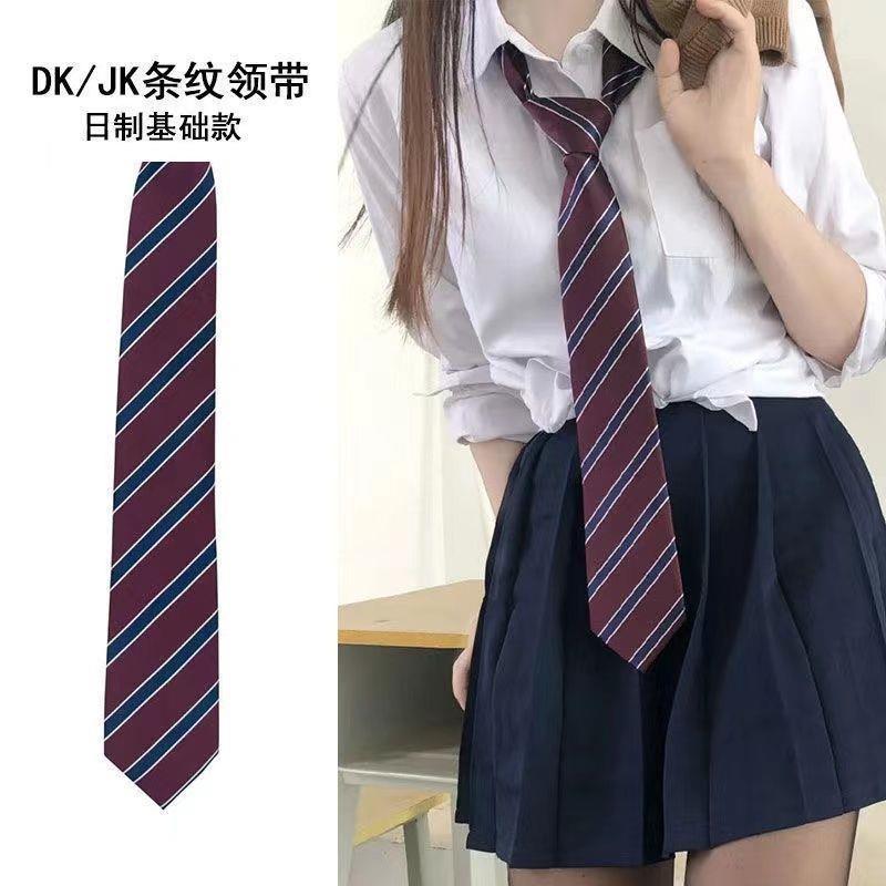 오리지널 일본산 DK/jk 스트라이프 넥타이 여성용 핸즈프리 버건디 유니폼 넥타이 유니섹스 스타일 핸섬 액세서리스토어 가기