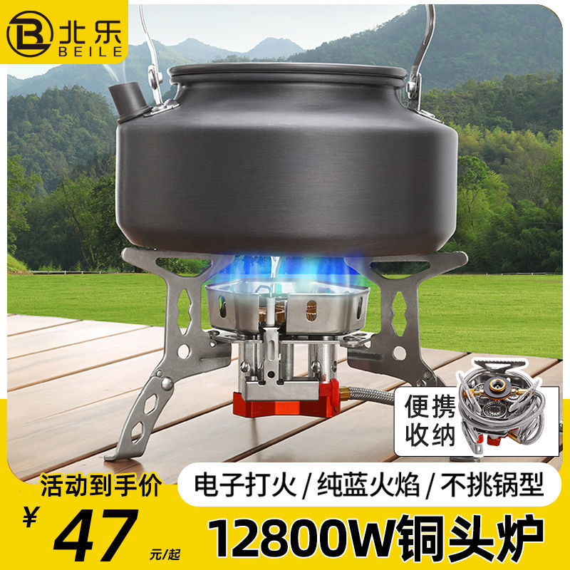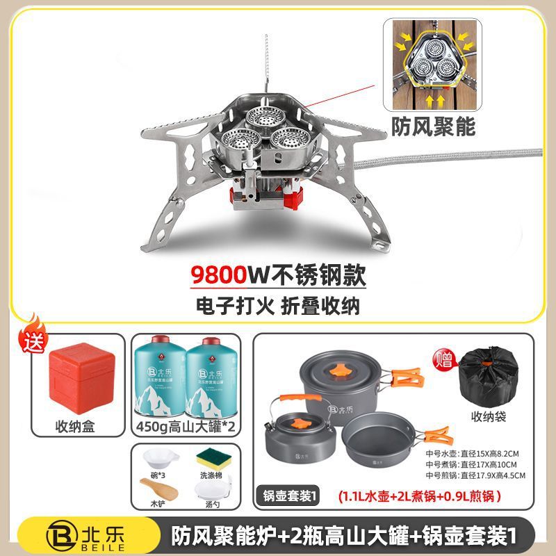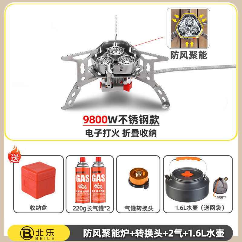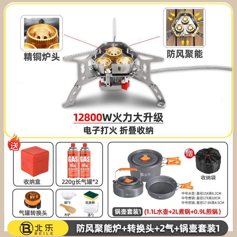 • ] 12800W 동난로 [물이 끓는 데 단 1분 소요 - [방풍 에너지 수집난로] + 변환헤드 + 가스 2개 + 냄비와 주전자 세트 1