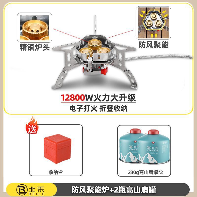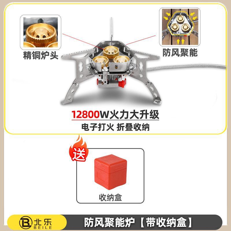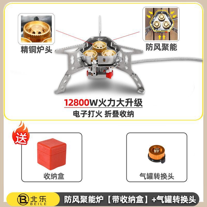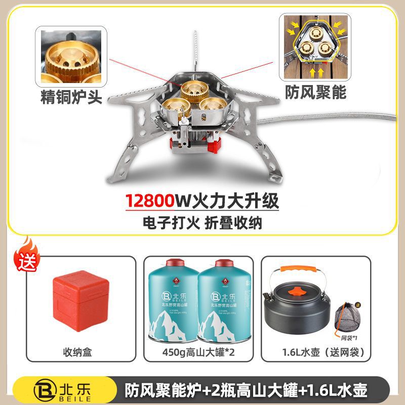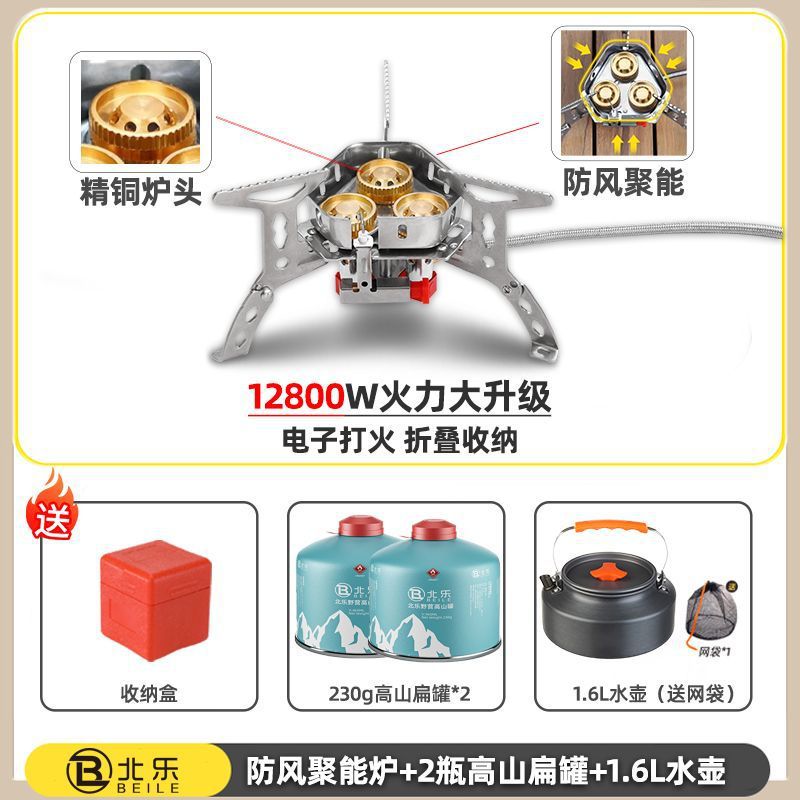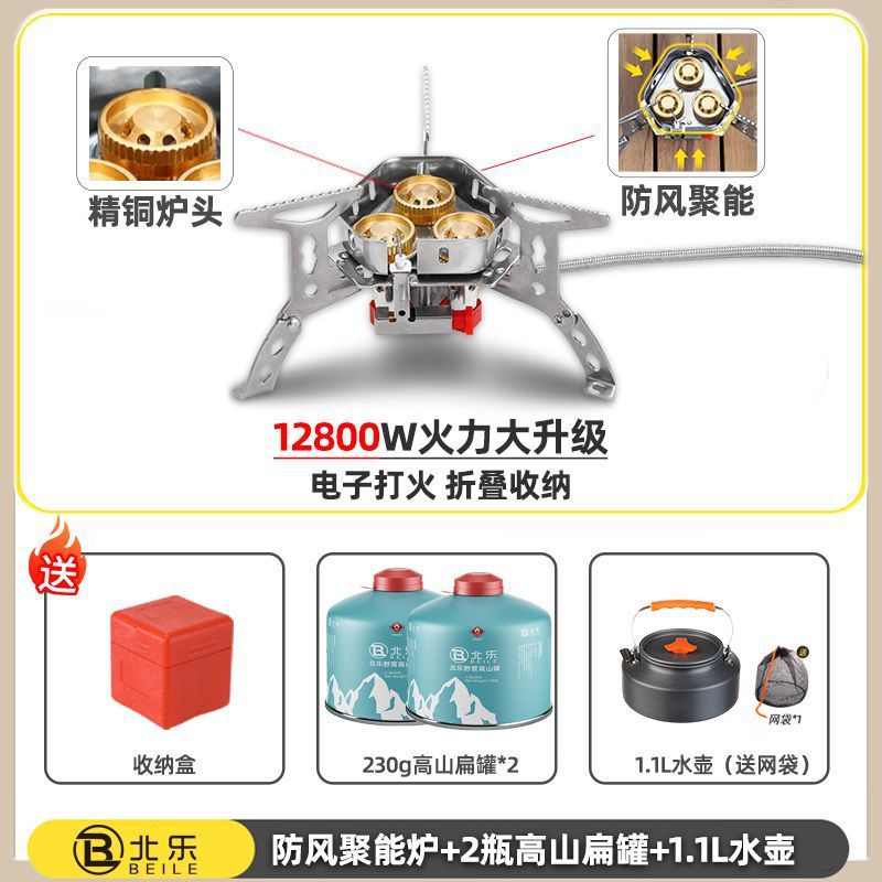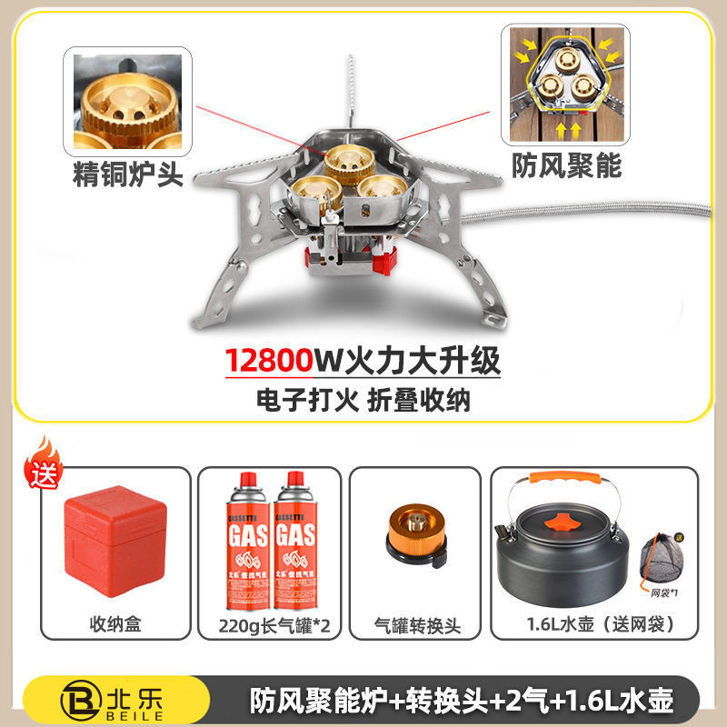 • ] 12800W 동난로 [물이 끓는 데 1분밖에 걸리지 않습니다 - [방풍 에너지 수집 난로] + 변환 헤드 + 가스 2개 + 주전자 1.1개