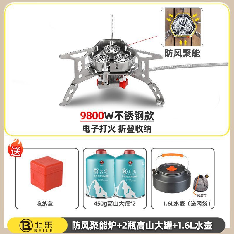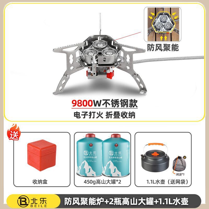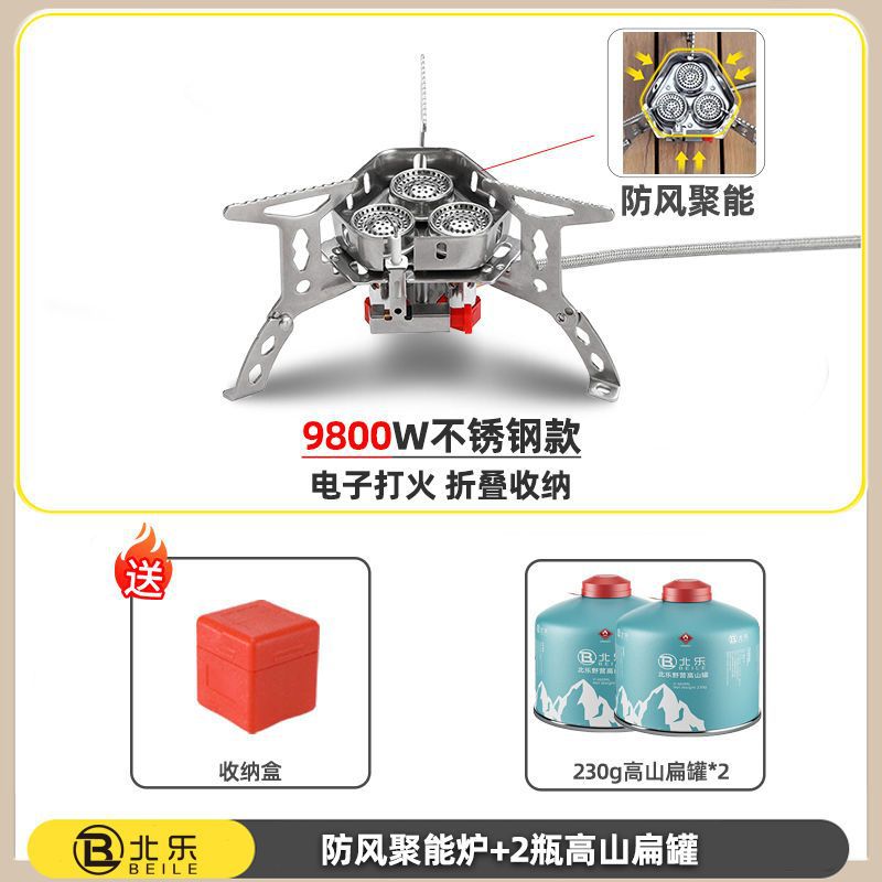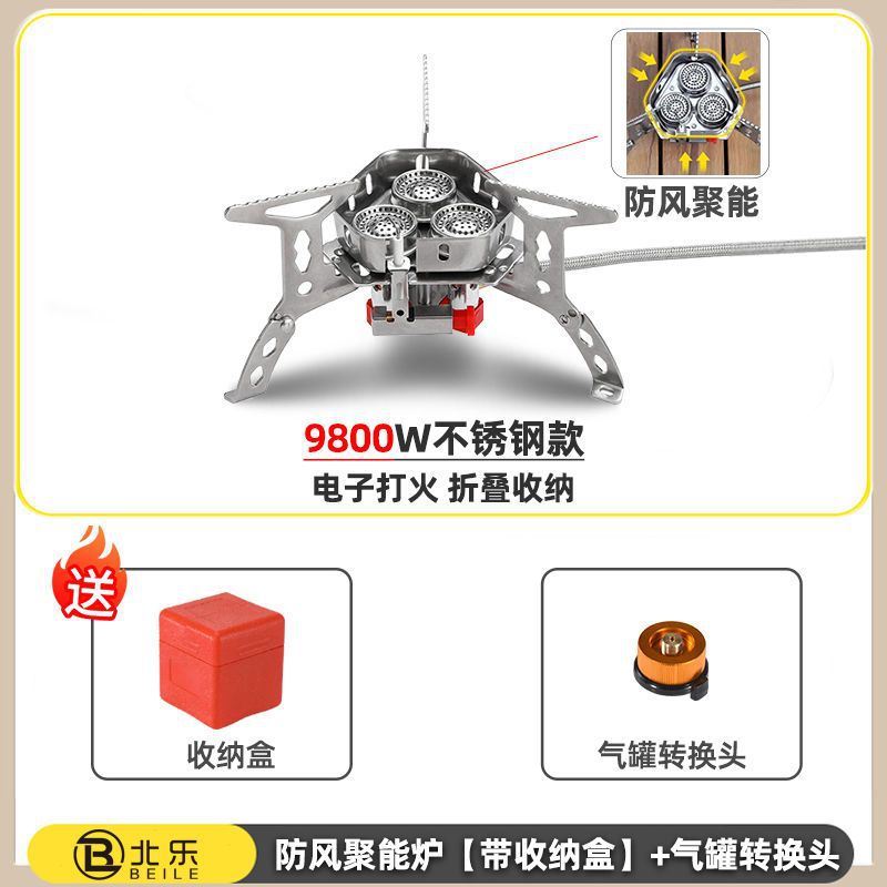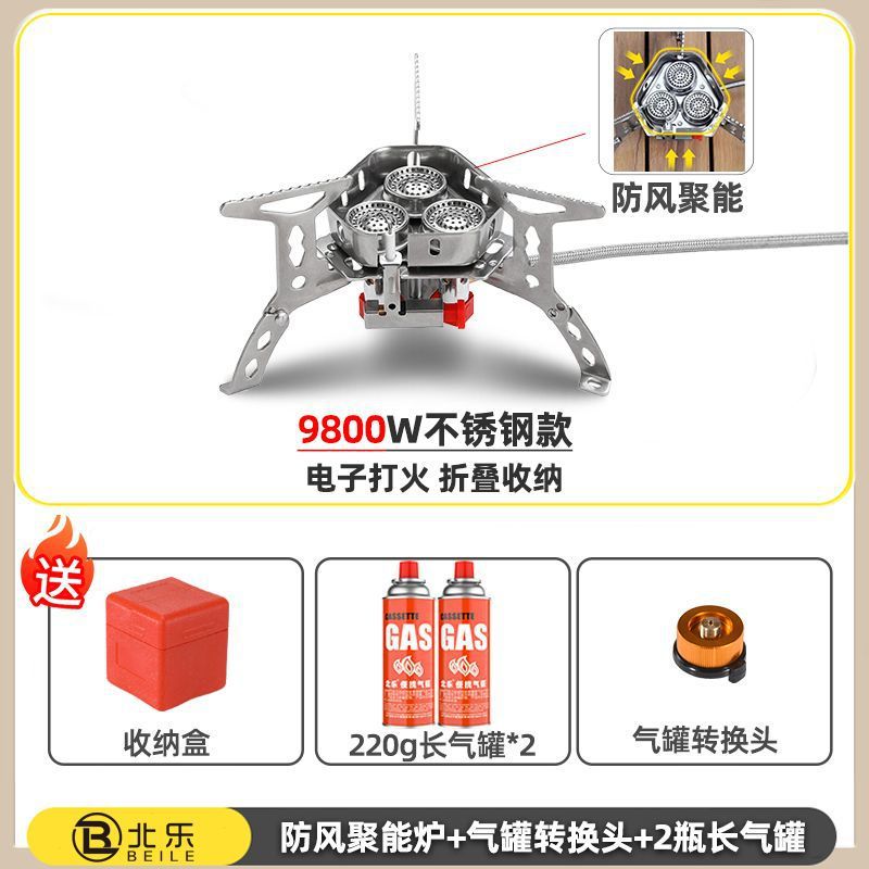 • ] 9800W 강철버너 [물이 끓는 데 단 3분 소요 - [방풍 에너지 수집로] + 가스탱크 변환 헤드 + 긴 가스탱크 2병