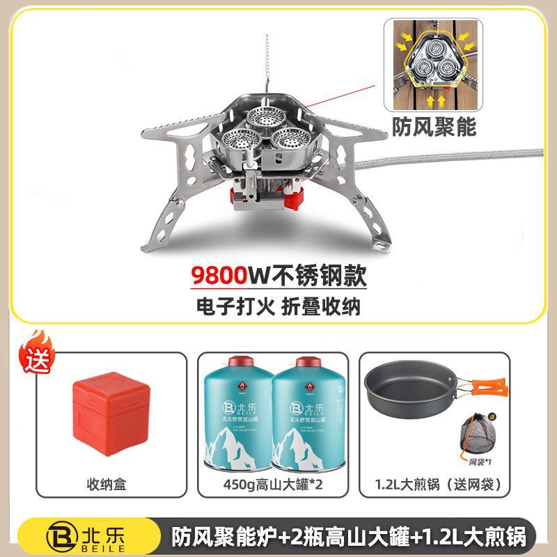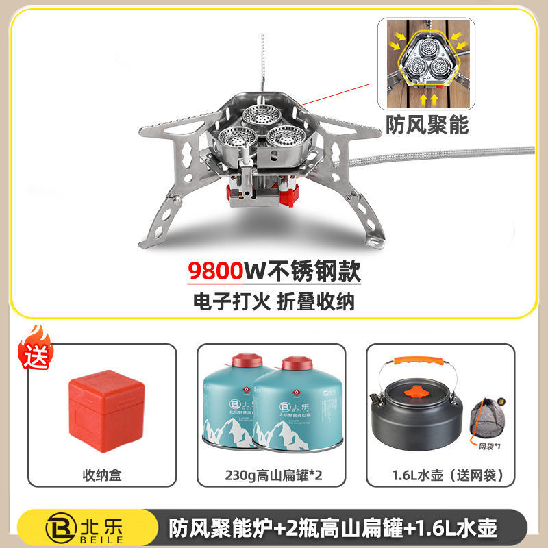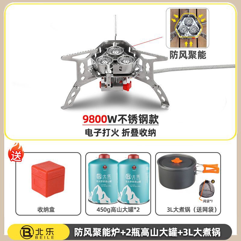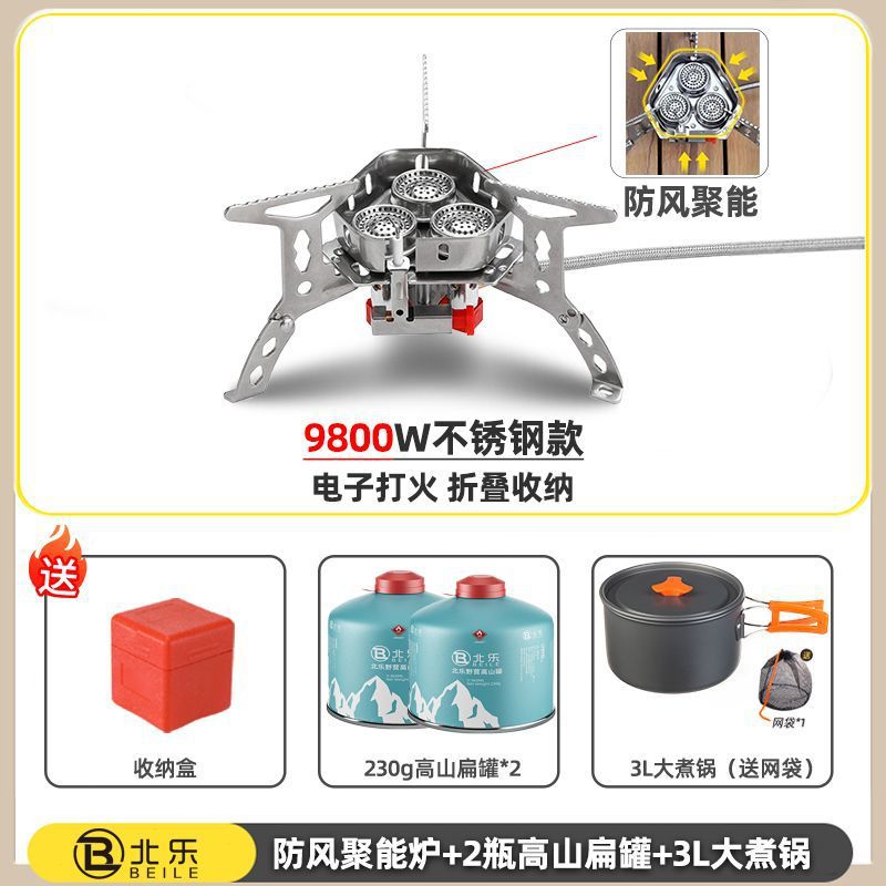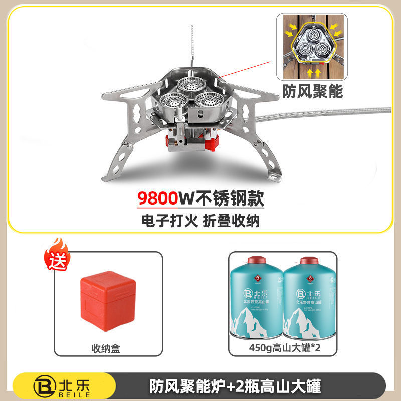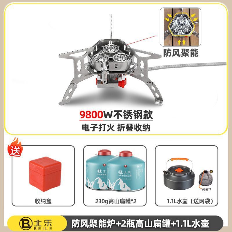 • ] 9800W 강철버너 [물이 끓는 데 단 3분 소요 - [방풍 에너지 수집로] + 가스탱크 변환 헤드 + 긴 가스탱크 2병