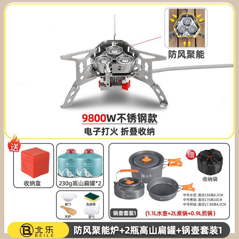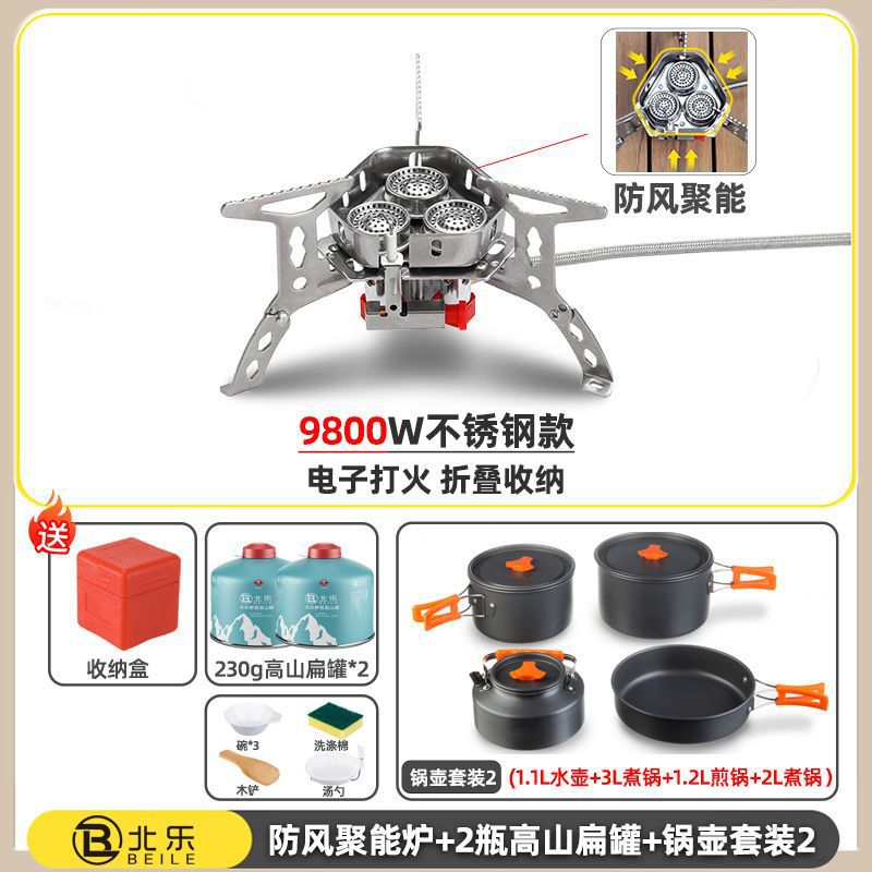 • ] 9800W 강철버너 [물이 끓는 데 단 3분 소요 - [방풍에너지 수집난로] + 알파인 플랫캔 2개 + 냄비와 주전자 세트 1