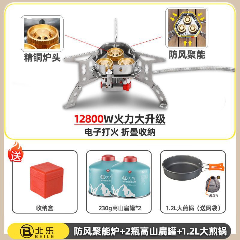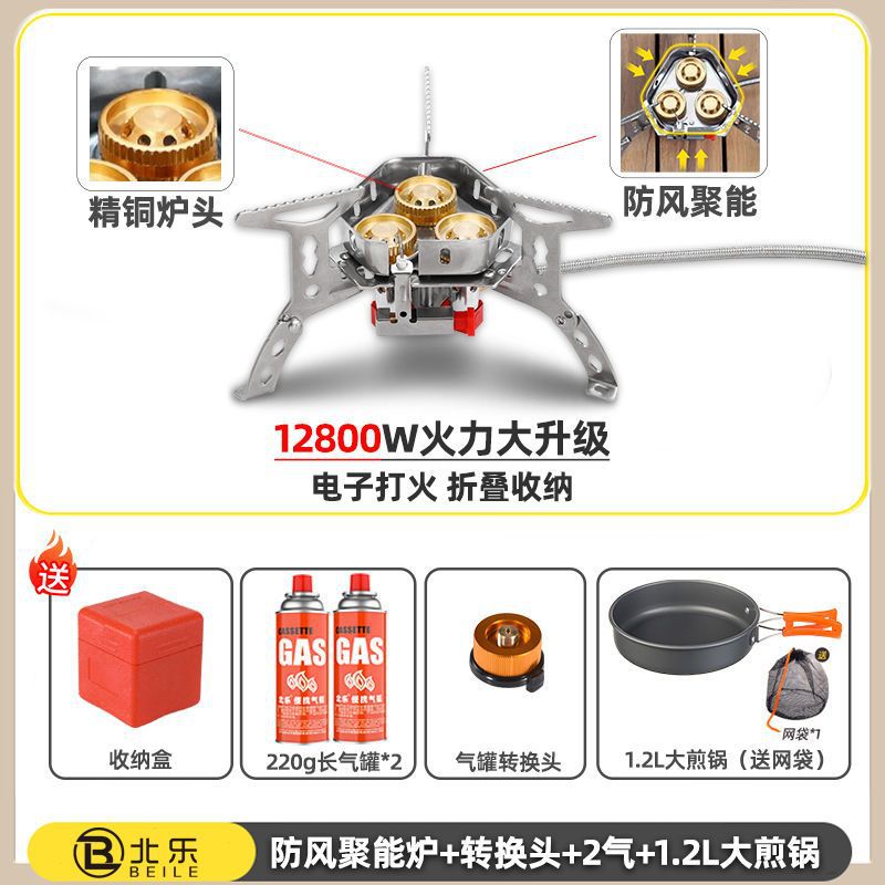 • ] 12800W 동난로 [물이 끓는 데 단 1분 소요 - [방풍 에너지 수집난로] + 변환헤드 + 가스 2개 + 프라이팬 1.2개