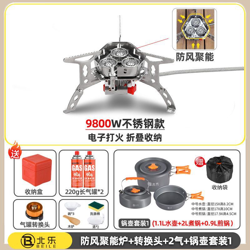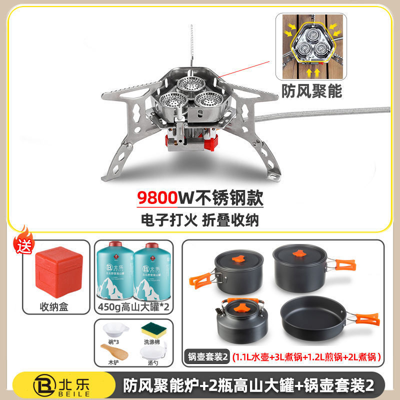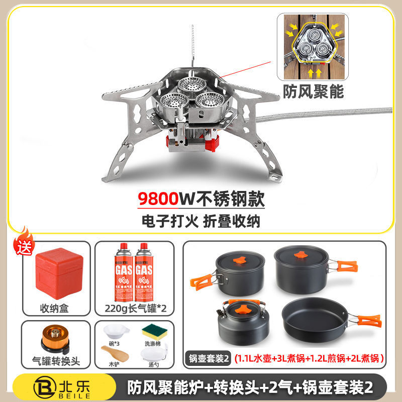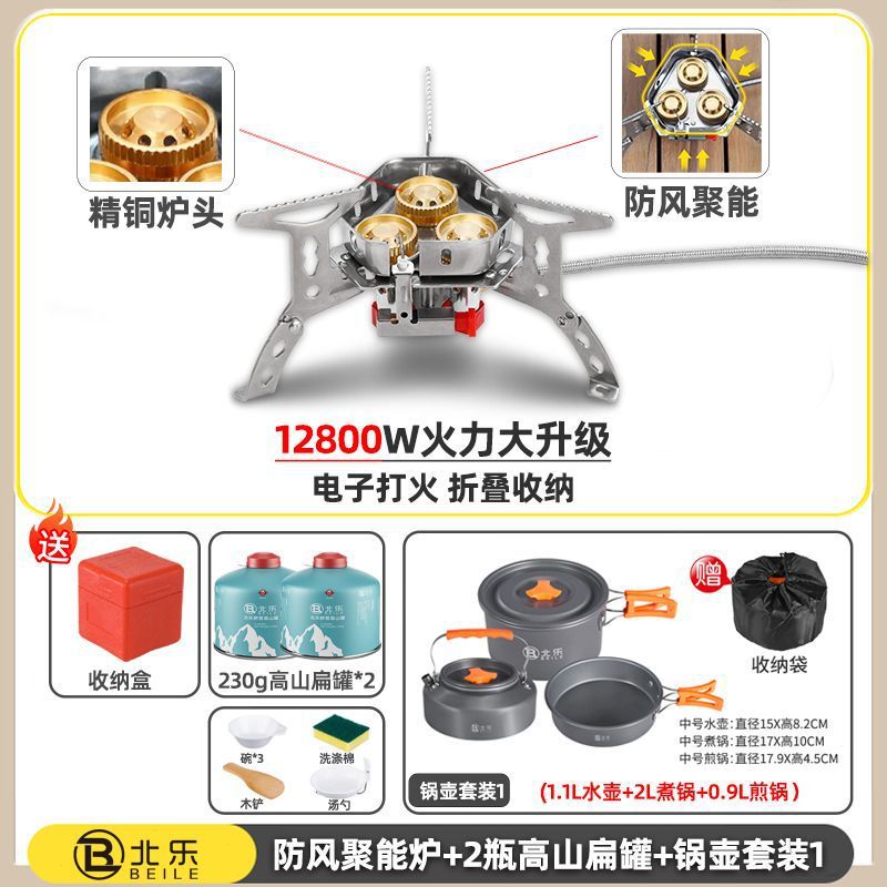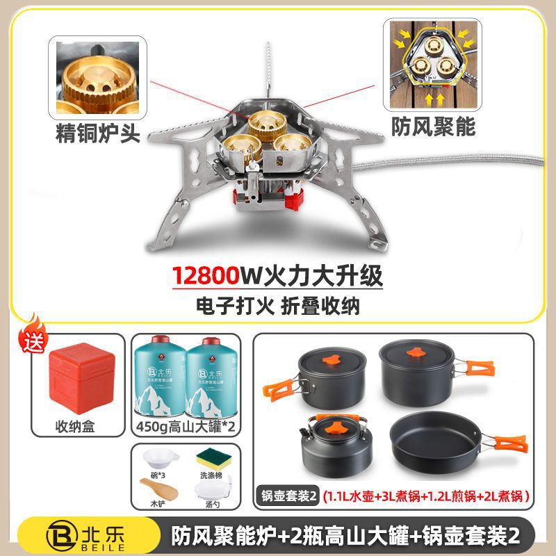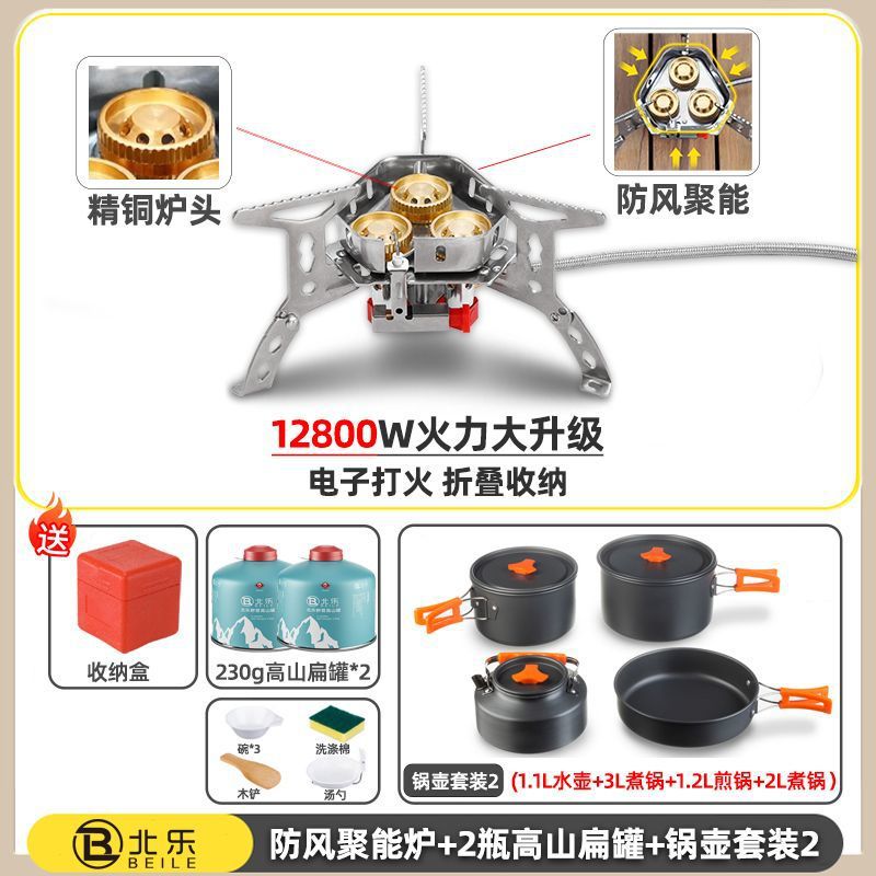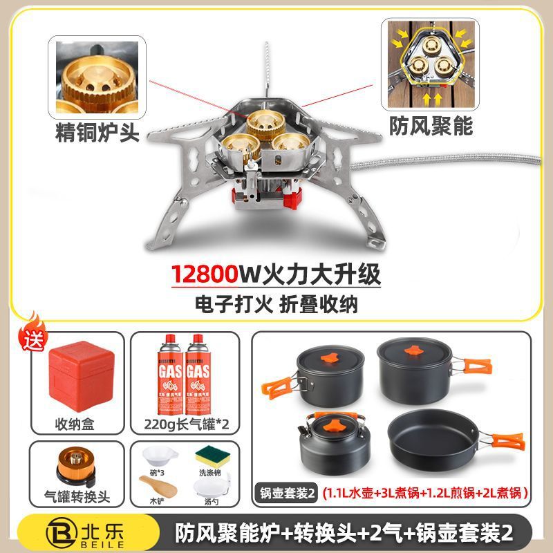 • ] 12800W 동난로 [물이 끓는 데 단 1분 소요 - [방풍 에너지 수집난로] + 변환헤드 + 가스 2개 + 냄비와 주전자 세트 2