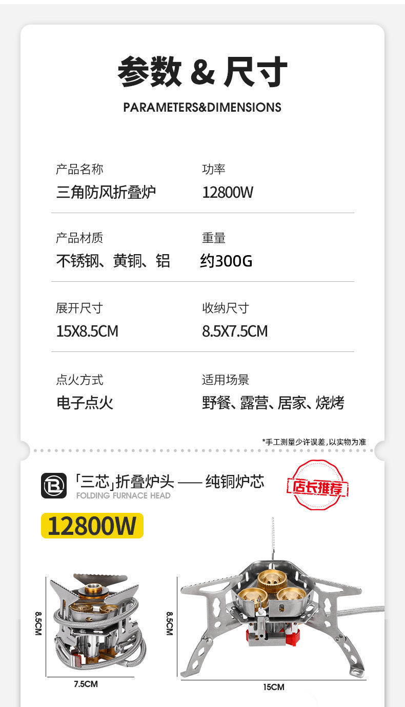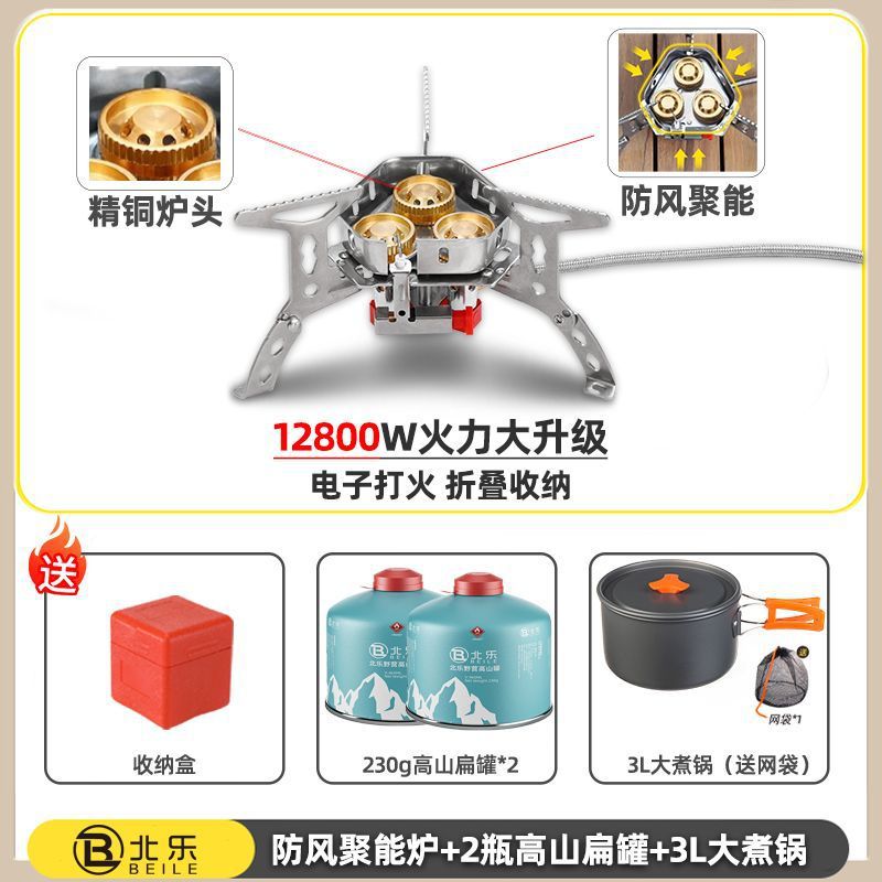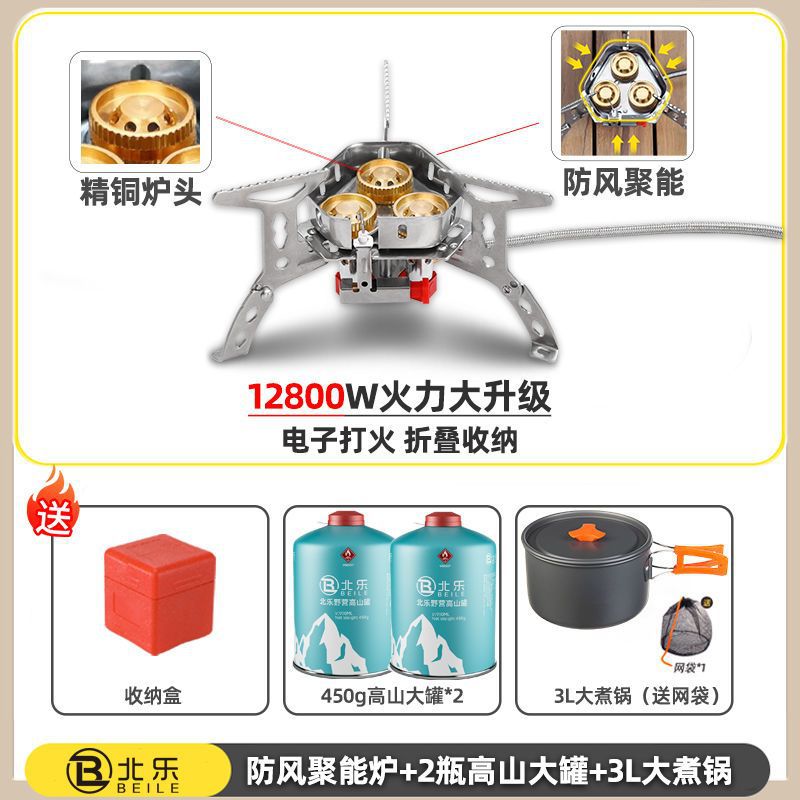 • ] 12800W 동난로 [물이 끓는 데 단 1분 소요 - [방풍 에너지 수집난로] + 변환헤드 + 가스 2개 + 3L 대형 냄비