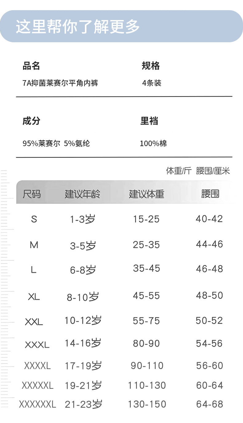 청소년 속옷 7A 항균 여름 얼음 실크 리오셀 소년 복서 반바지 클립 없음 PP 중학교 복서 팬티스토어 가기