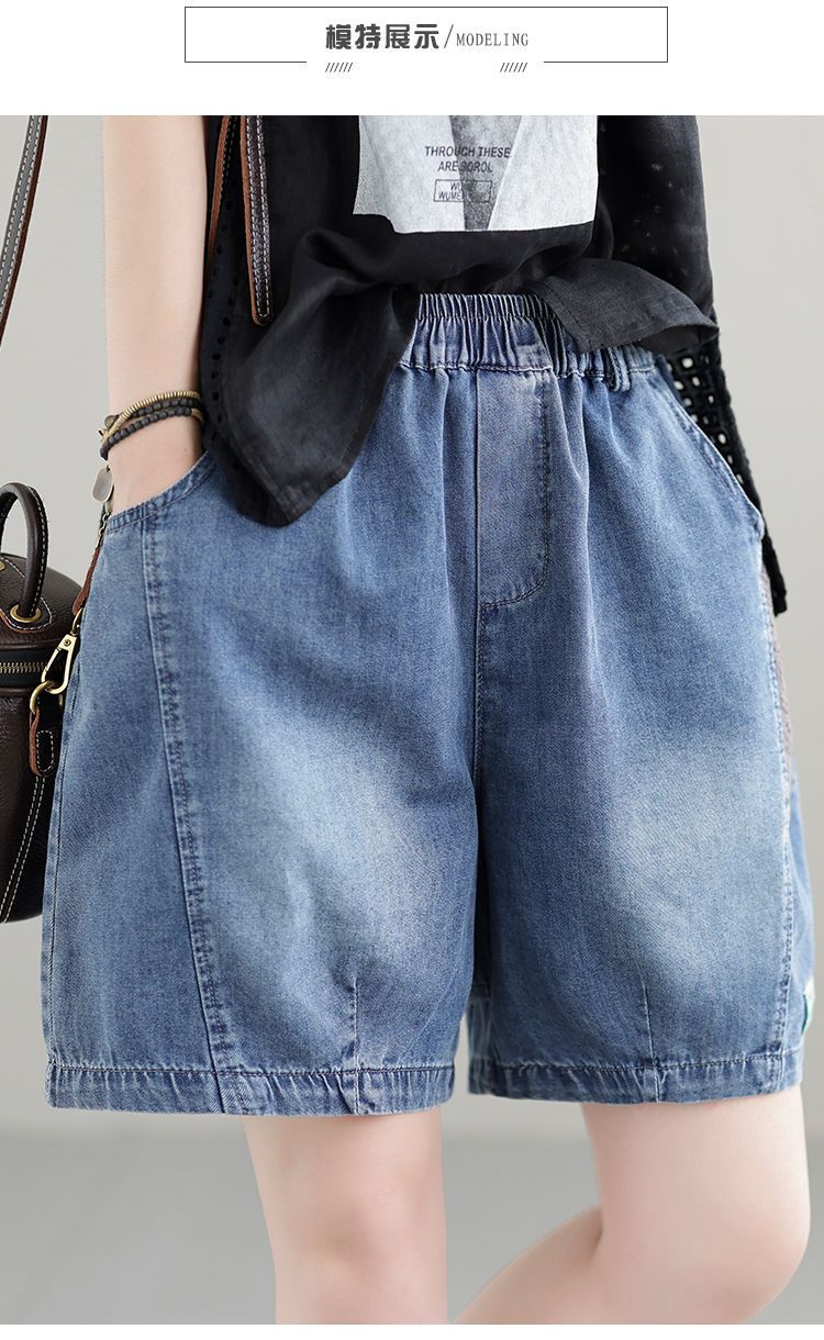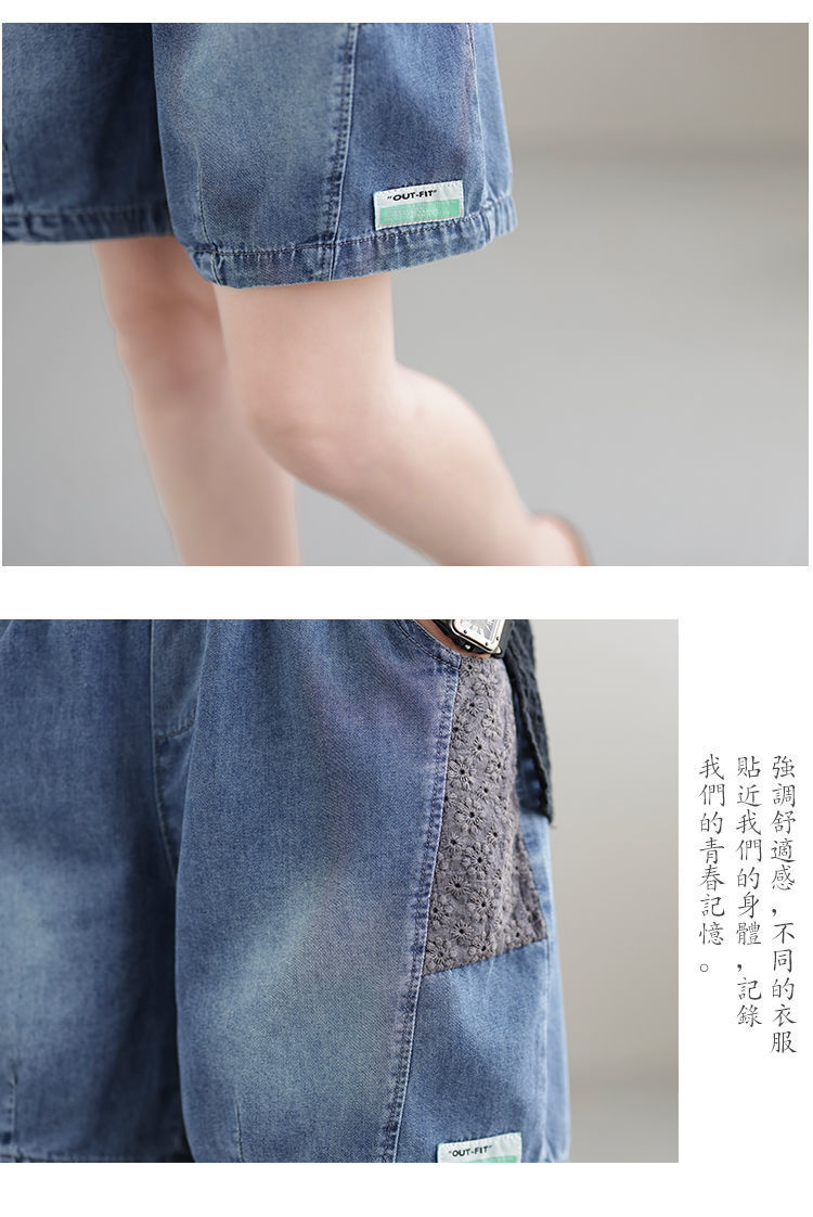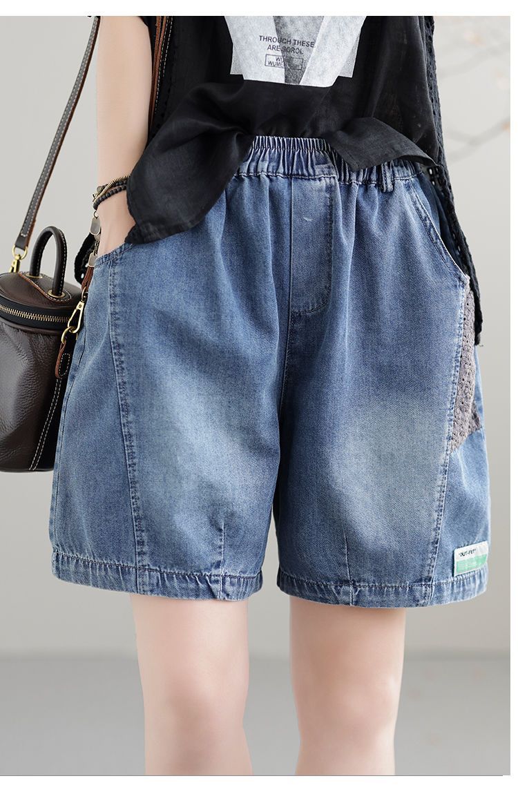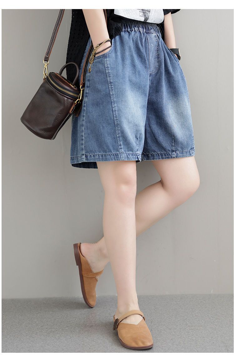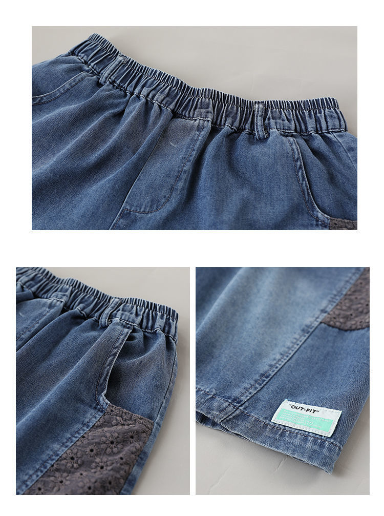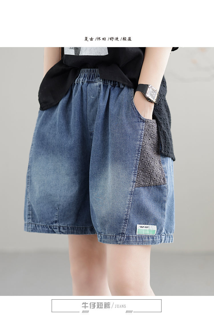 한국 스타일 데님 반바지 여름 새로운 반바지 루즈 캐주얼 복고풍 패션 스플 라이스 하렘 바지 여성 청바지스토어 가기