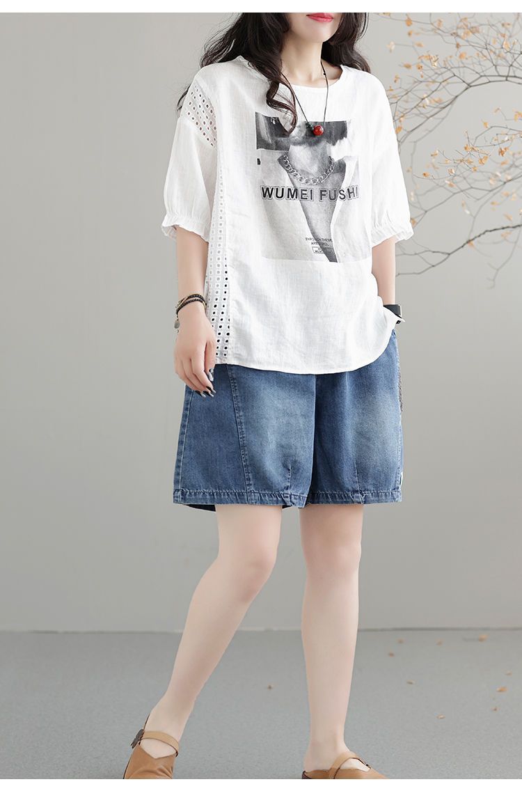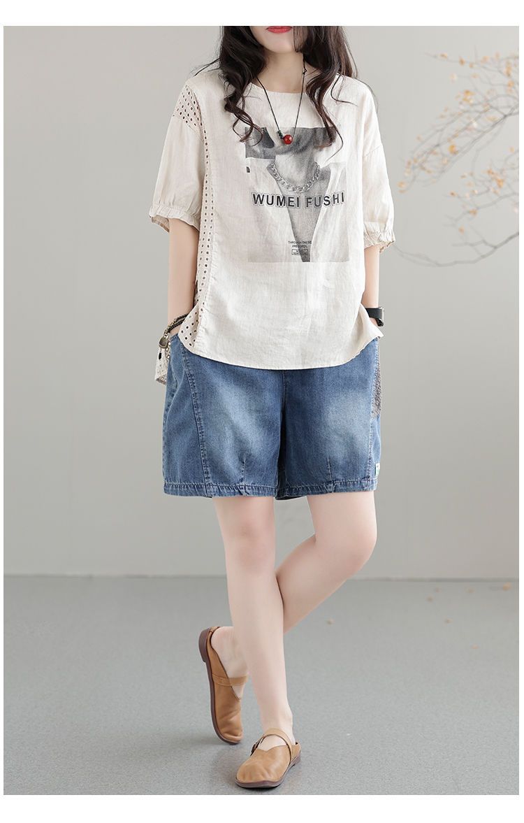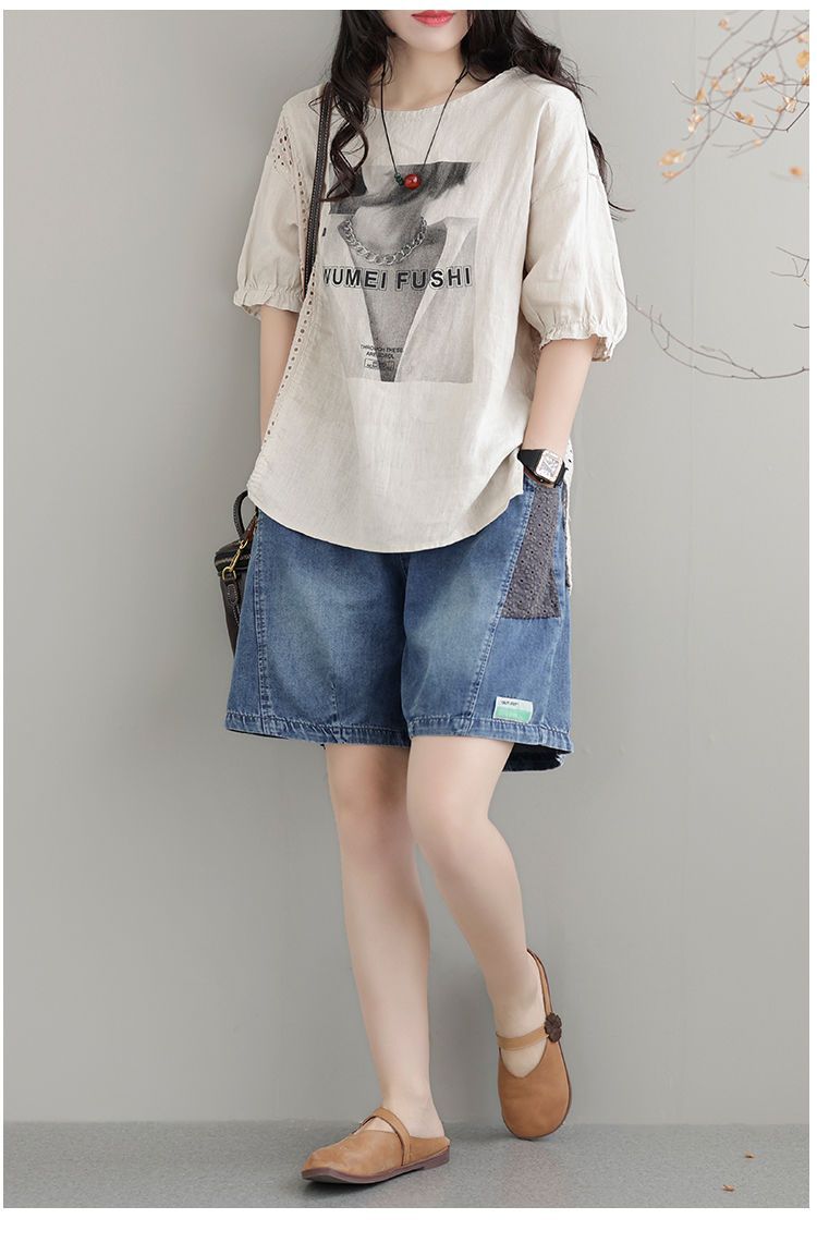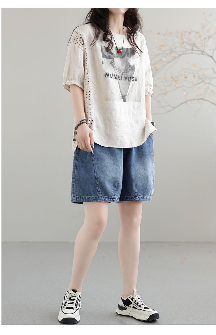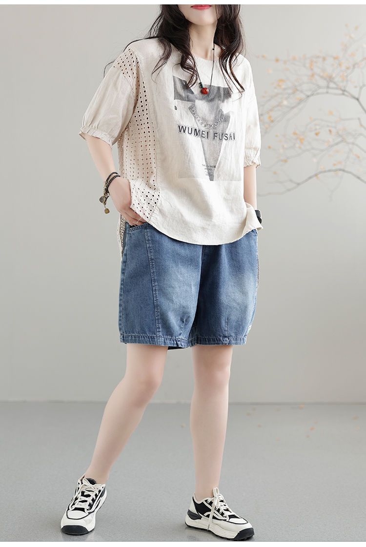 한국 스타일 데님 반바지 여름 새로운 반바지 루즈 캐주얼 복고풍 패션 스플 라이스 하렘 바지 여성 청바지스토어 가기