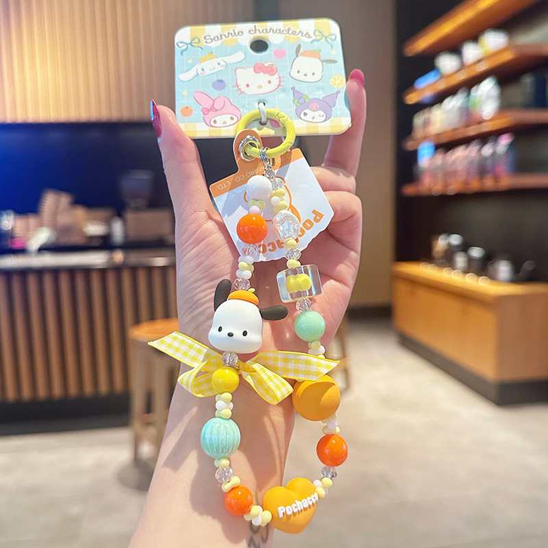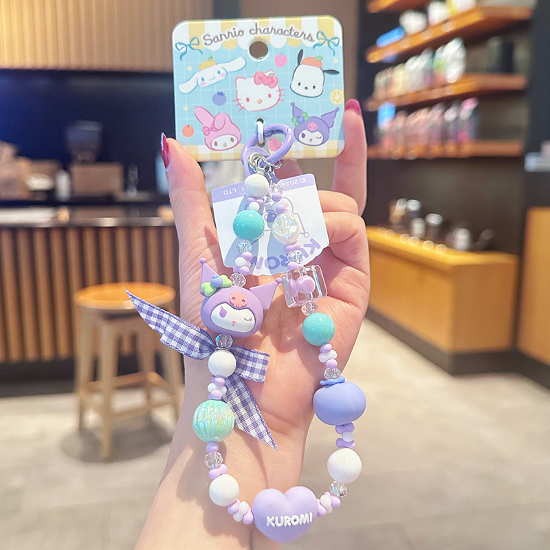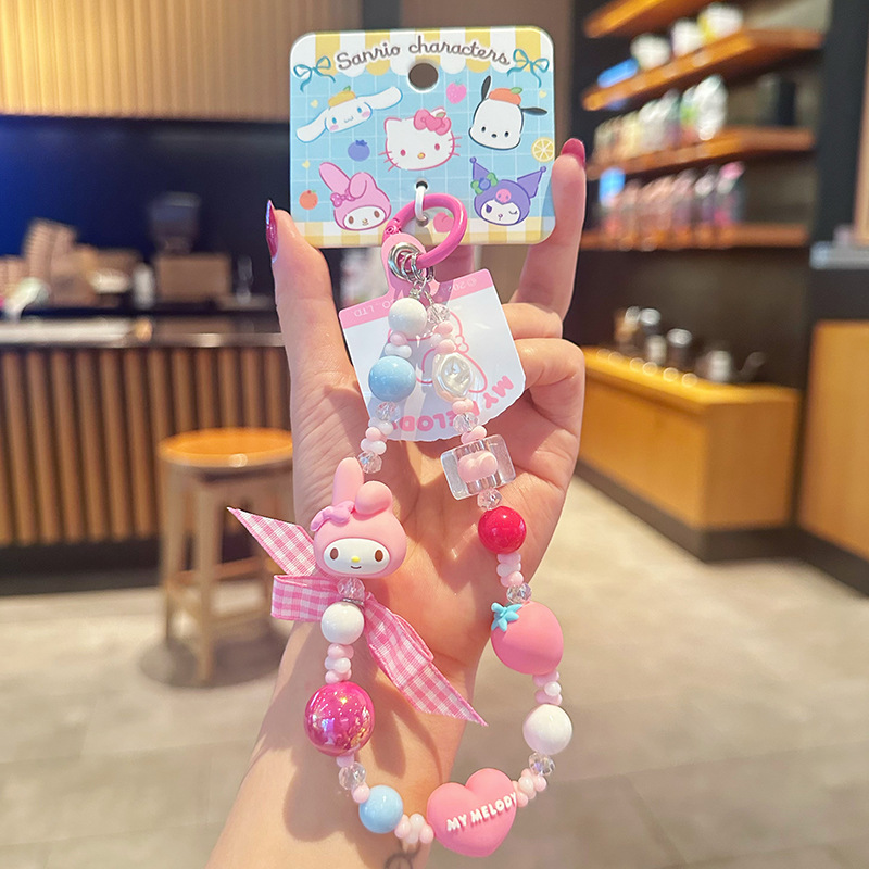 정품 산리오 인형 휴대폰 펜던트 쿠로미 비즈 큰 귀 개 멜로디 과일 열쇠 고리 펜던트