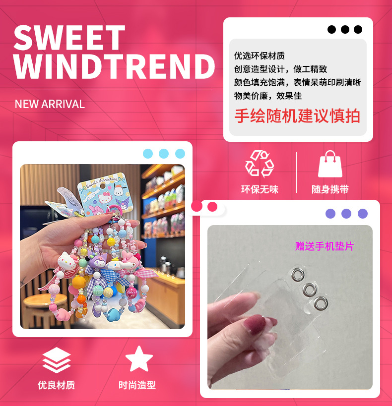 정품 산리오 인형 휴대폰 펜던트 쿠로미 비즈 큰 귀 개 멜로디 과일 열쇠 고리 펜던트스토어 가기
