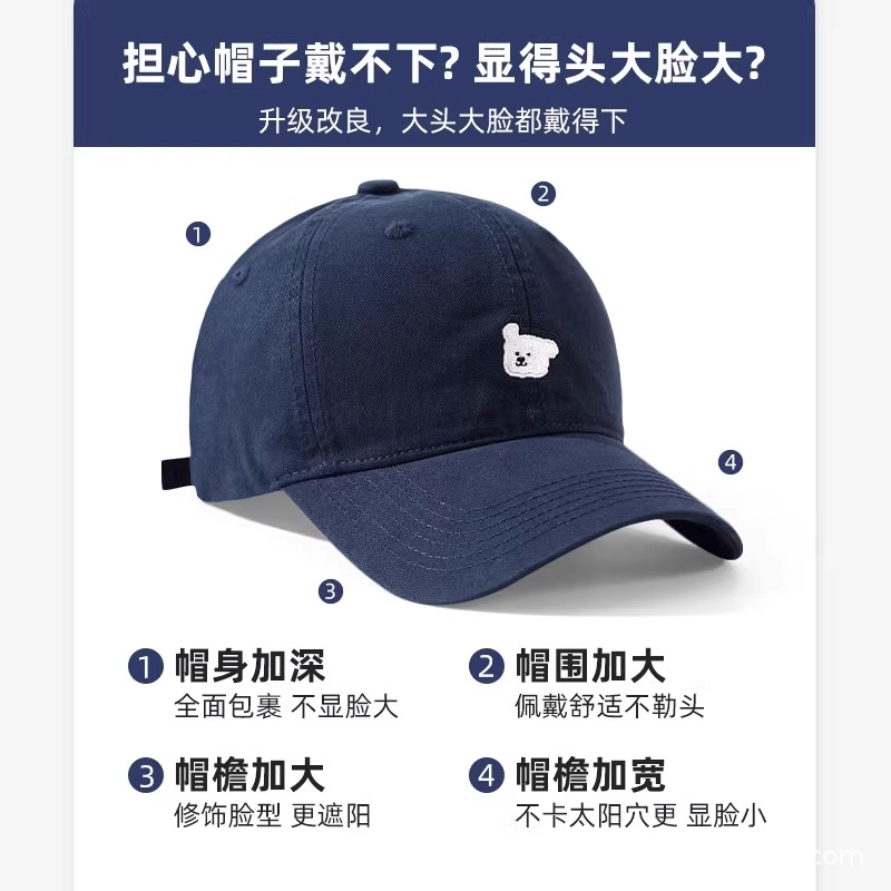 여름 여성용 자수 야구 모자, 머리 둘레가 큰 귀여운 일본 모자, 얼굴이 보이는 작은 커플, 챙이 넓은 남성용 다용도 피크 캡스토어 가기