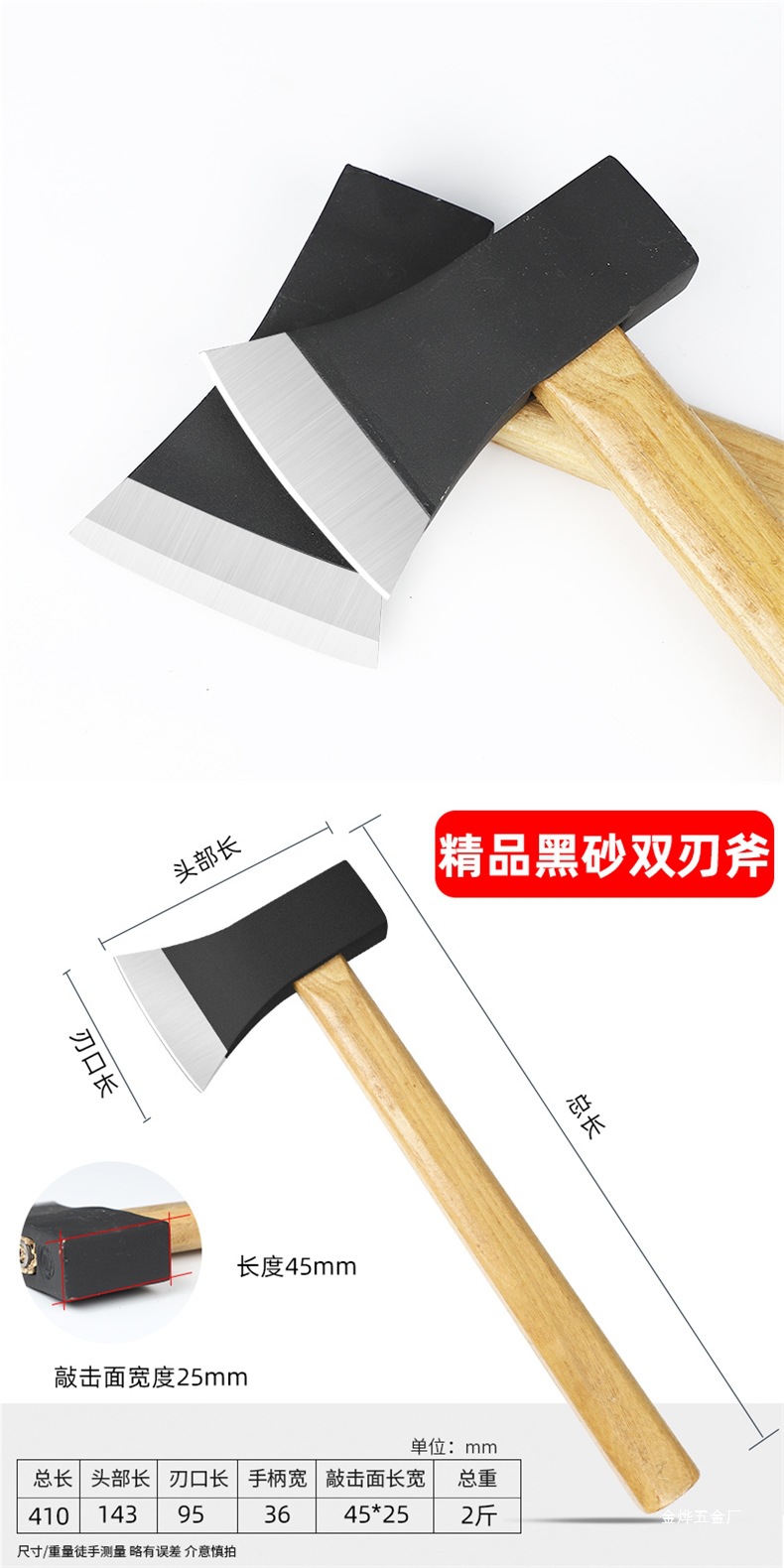 • 2.5kg 고품질 단조 나무 벌채 도끼(강철 막대 절단 가능)