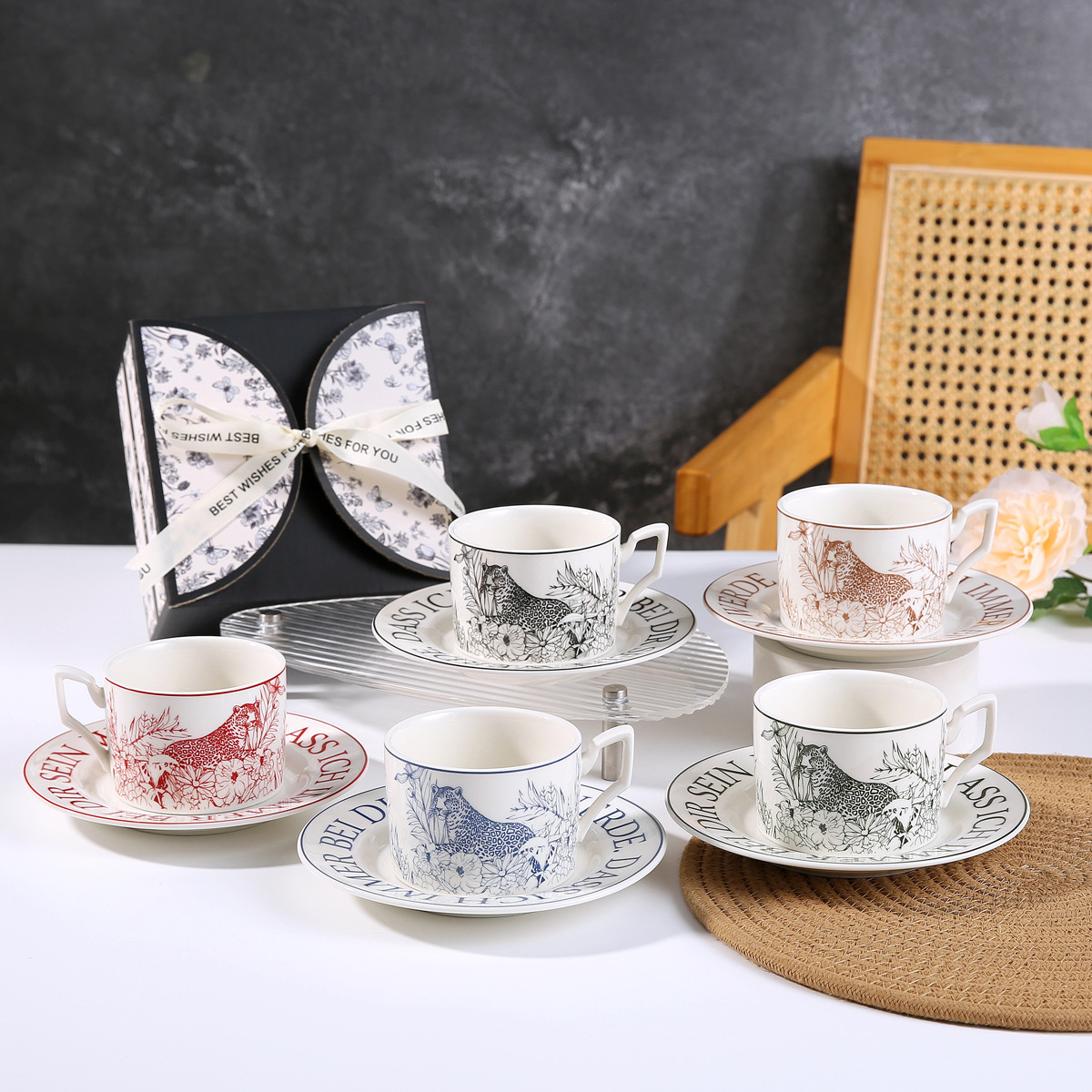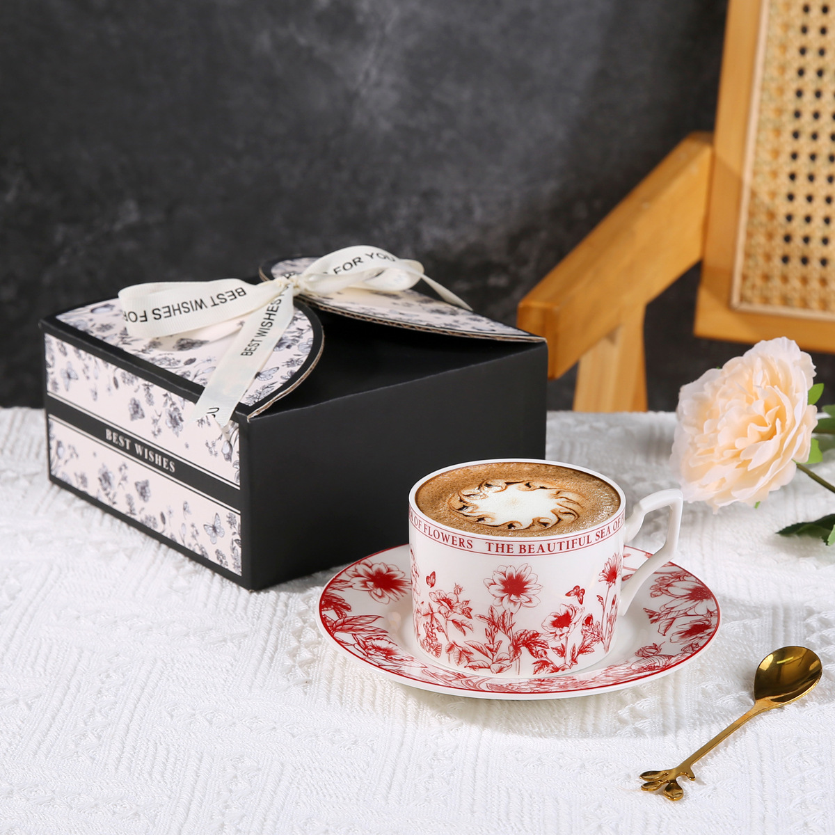 고급스러운 복고풍 세라믹 커피 컵과 접시 세트 라이트 럭셔리 소녀 애프터눈 티 선물 상자 도매