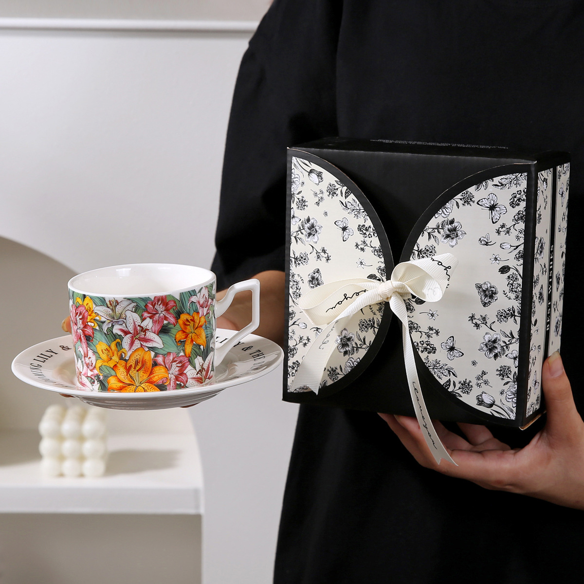 • 우아한 릴리 커피 컵과 접시