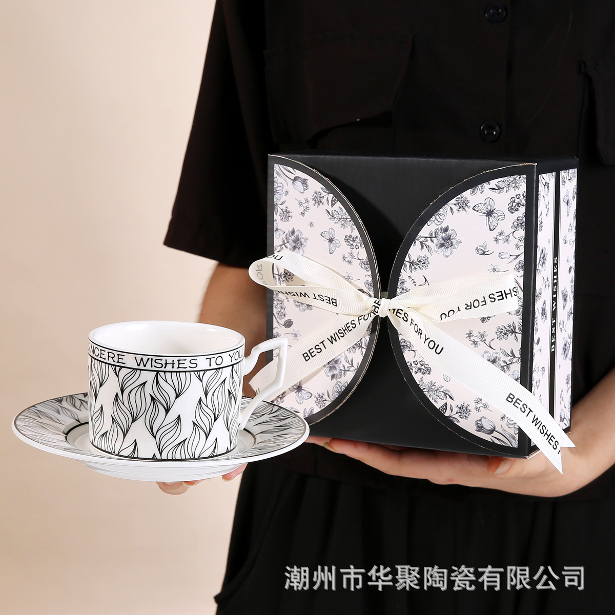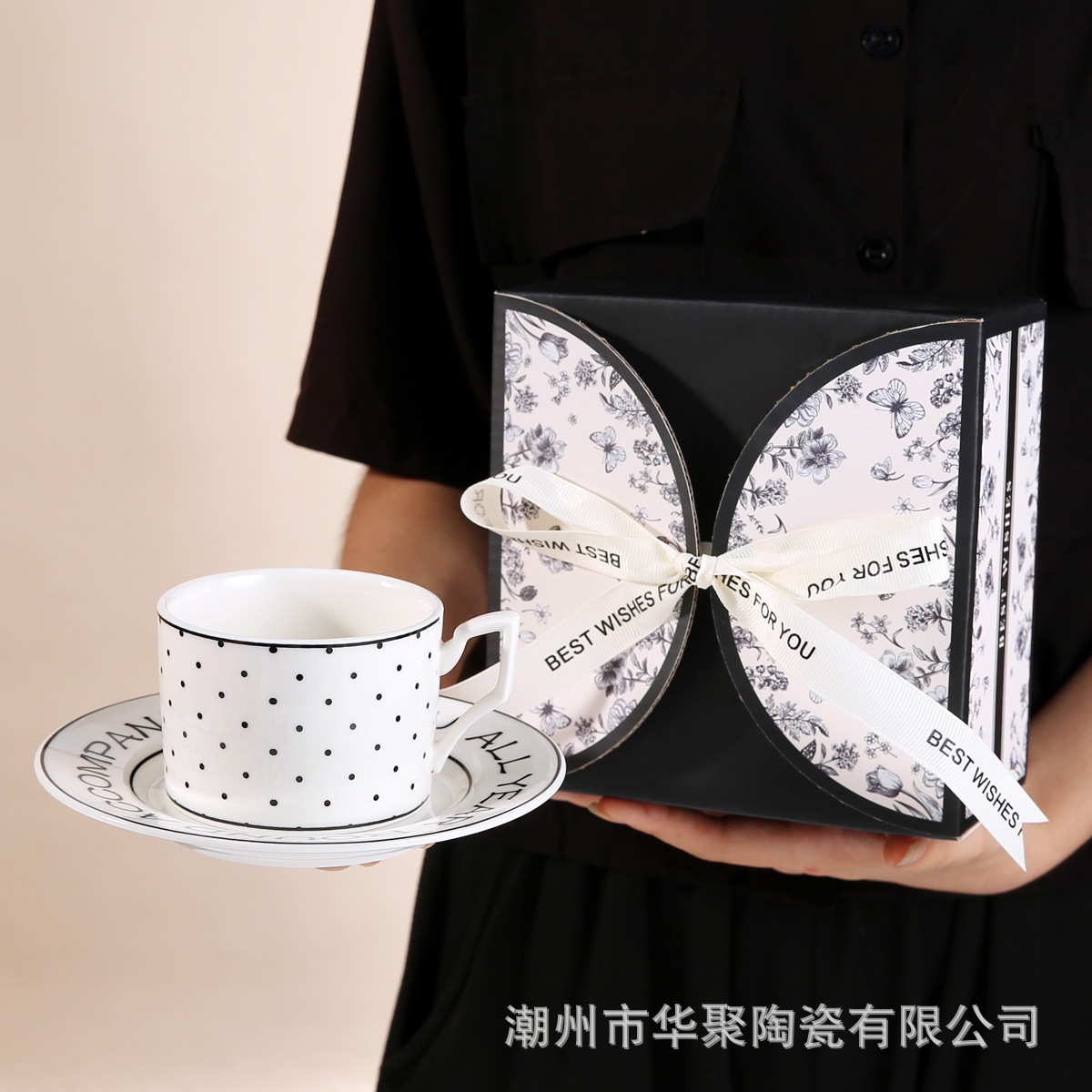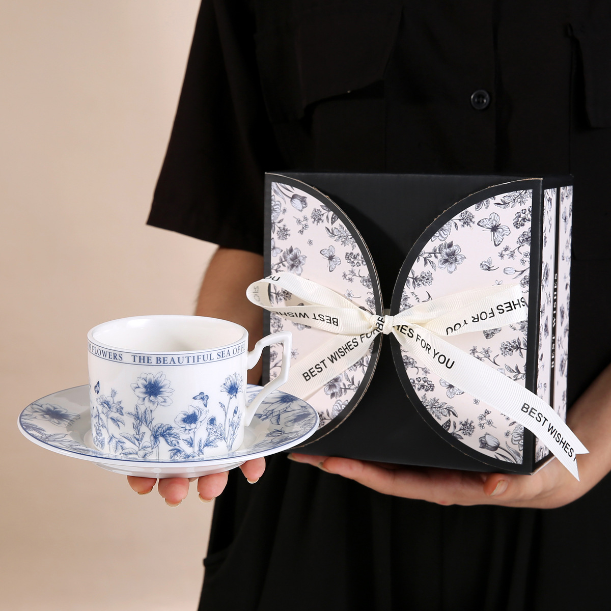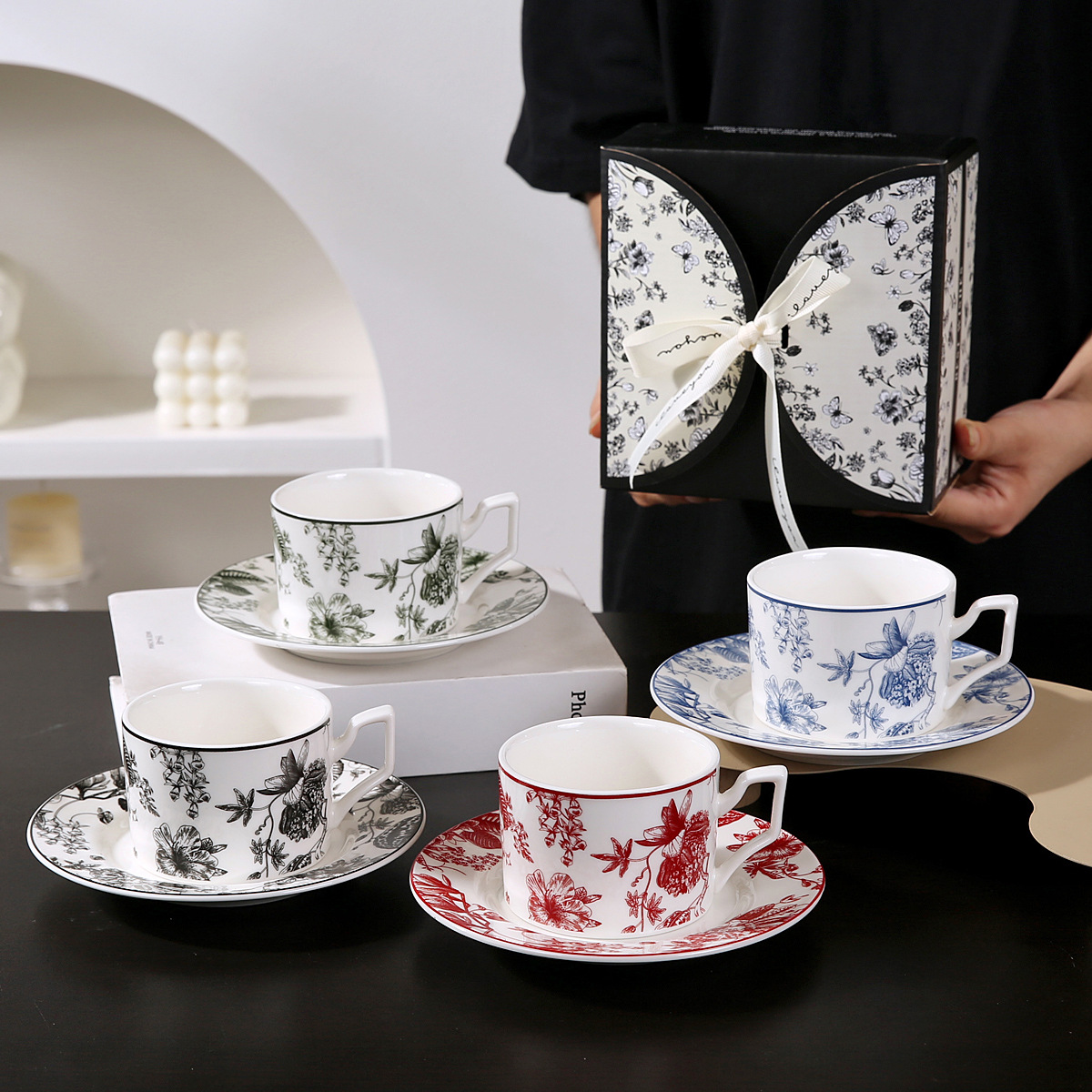 • 나비 블랙 커피 컵과 접시