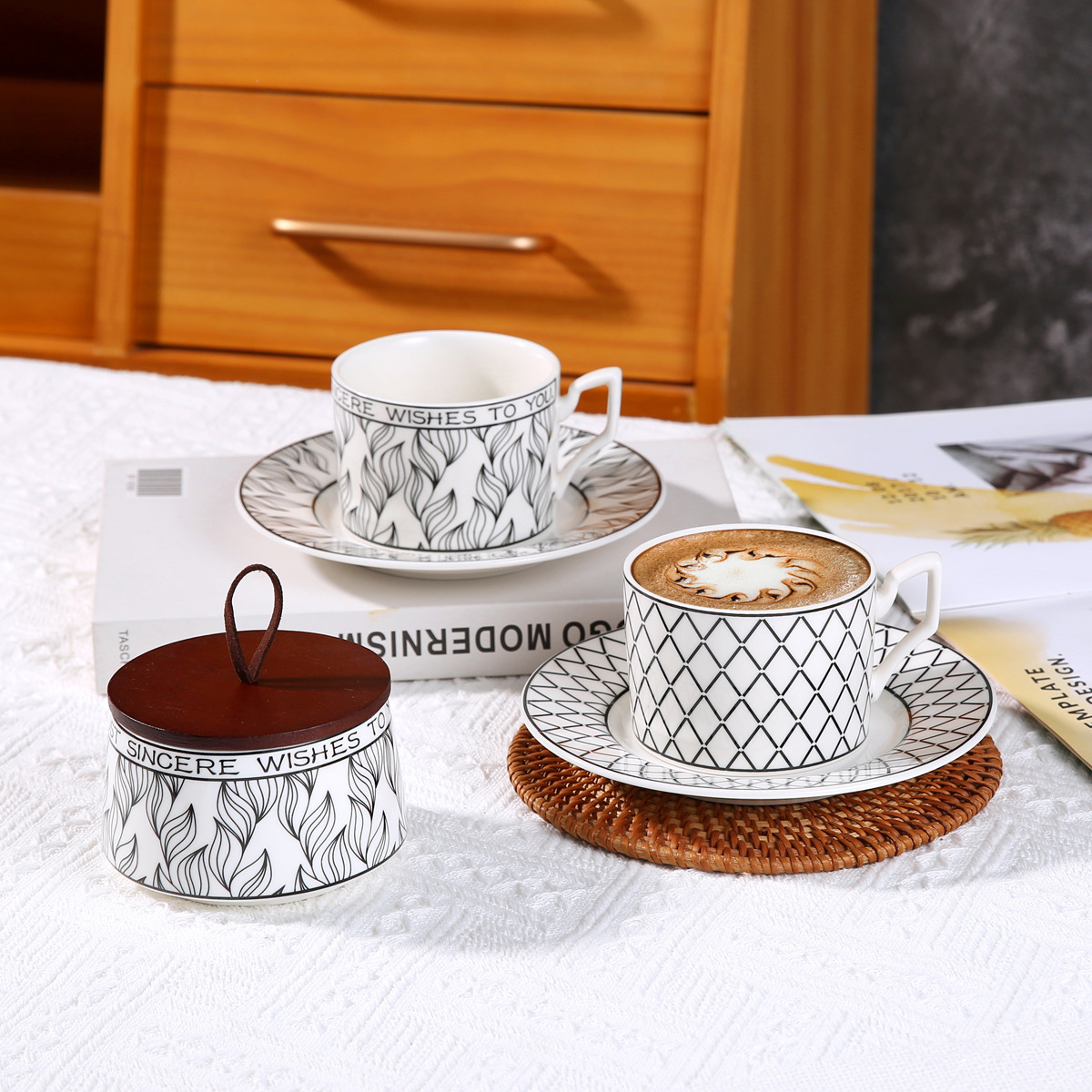 • 세련된 프리즘 커피 컵과 접시