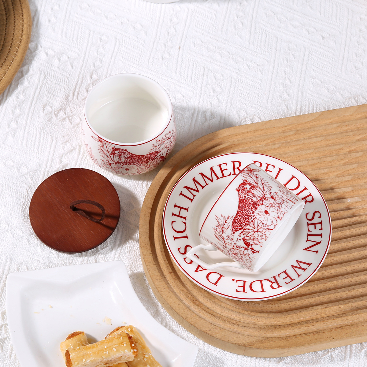 • 레트로 플로럴 레드 커피 컵과 접시