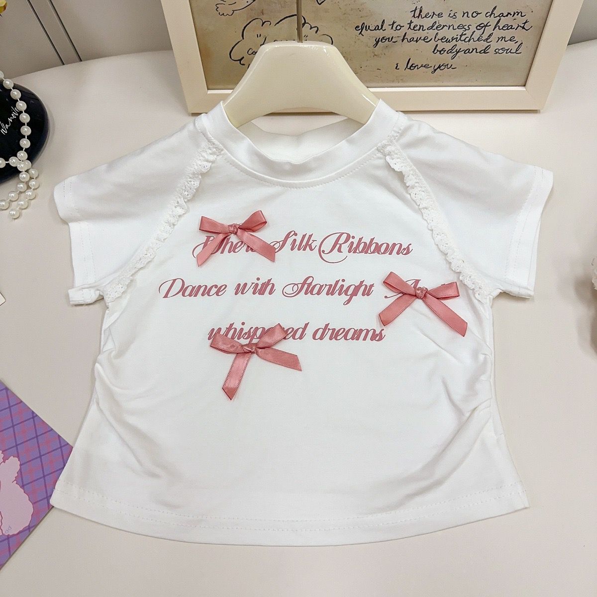 2025 년 여름 소녀 세트 새 편지 프린트 반팔 티셔츠 레이스 스커트 크로스 보더 세대 헤어