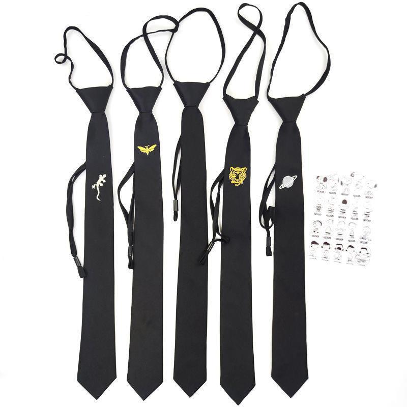MIMI 여성용 무료 긴 넥타이, 검은색 별 자수 지퍼 스타일 학생 장식, 캐주얼, 다용도, 잘 생기고 개성